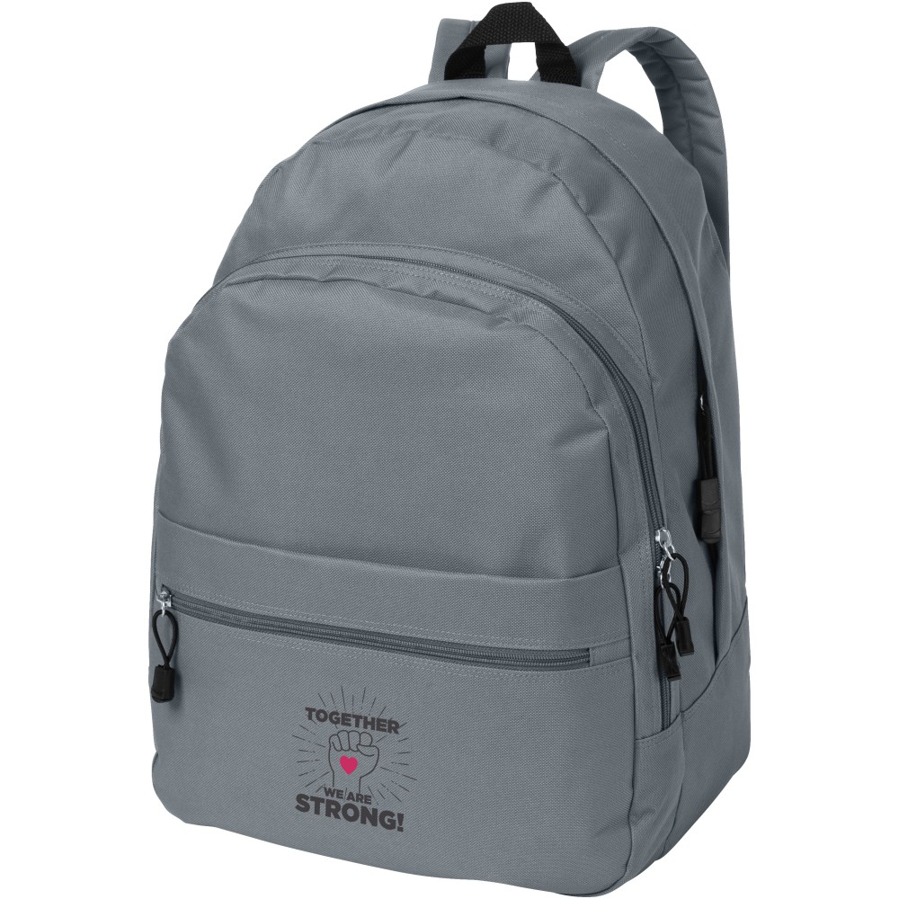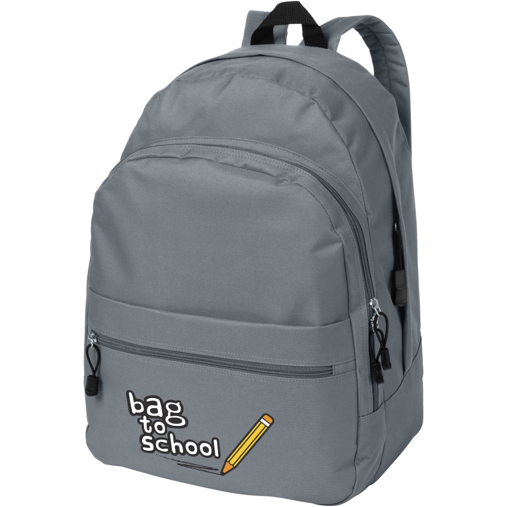 A kényelmes Trend hátizsák nyerő a promóciós hátizsákok között. A divatos kialakítású táska négy rekesszel rendelkezik: két cipzáras rekesszel, egy elülső cipzáras zsebbel és egy tépőzáras elülső zsebbel, így bőséges helyet kínál nagy és kis tárgyak tárolására egyaránt. A termék 600D poliészterből készült. Emblémázás: Hímzés, Szitanyomás
