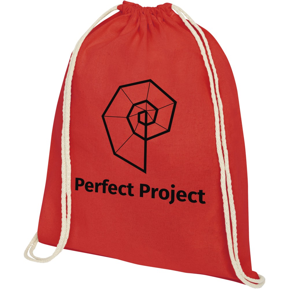 Tornazsák natúr húzózsinórral. Teherbírás: 5 kg. 140 g/m2 pamut. Pamut, 140 g/m2. Emblémázás: Szitanyomás