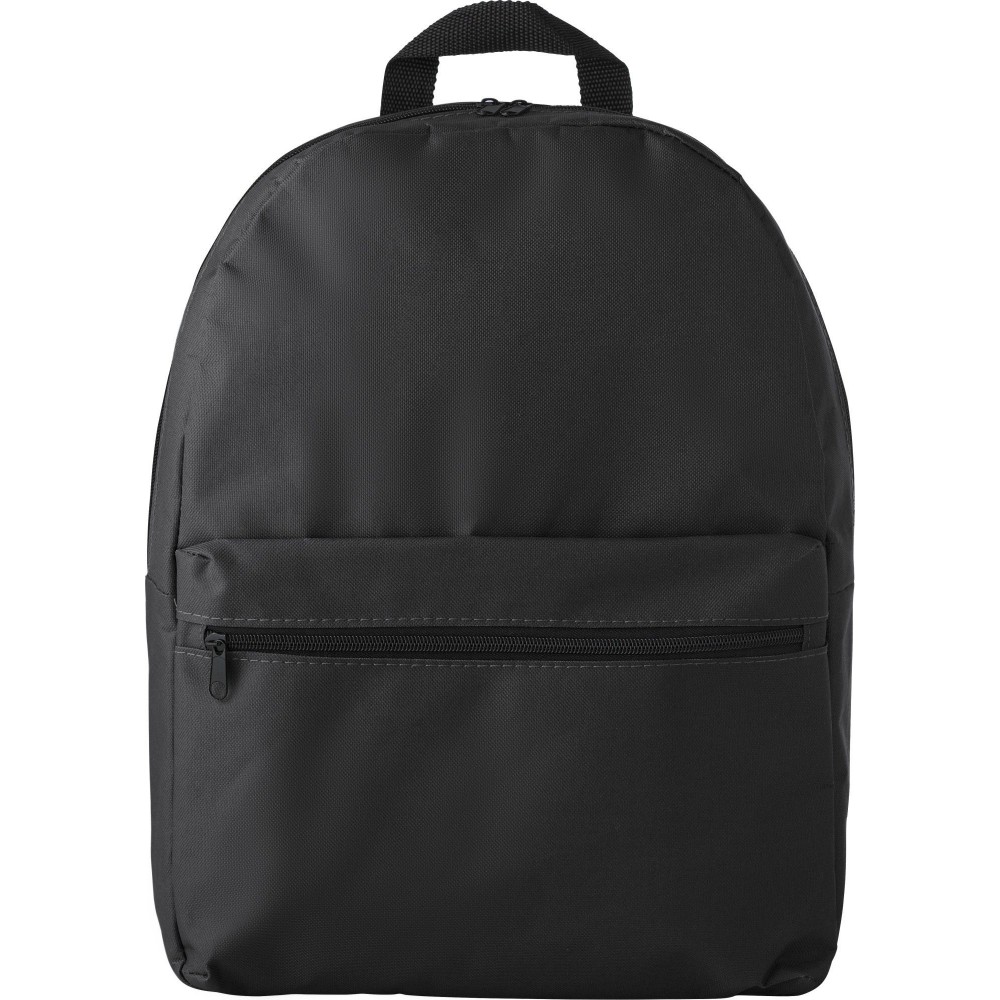 Hátizsák cipzáros elsőzsebbel, állítható, párnázott vállpánttal. 600D poliészter. Emblémázás: Szitanyomás
