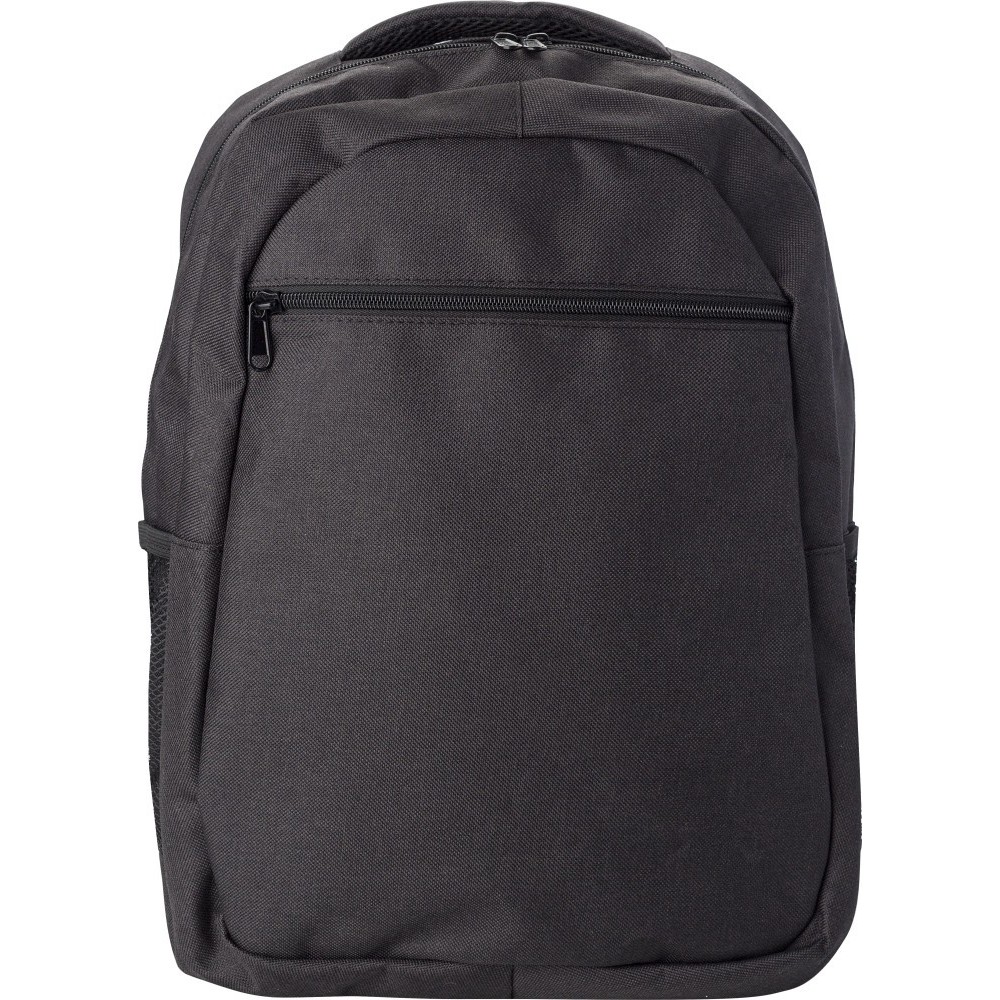 Hátizsák cipzáras elsőzsebbel és állítható vállpántokkal. Belső zseb laptop számára 15"-ig. 2 oldalon hálós zseb. 600D poliészter. Emblémázás: Szitanyomás