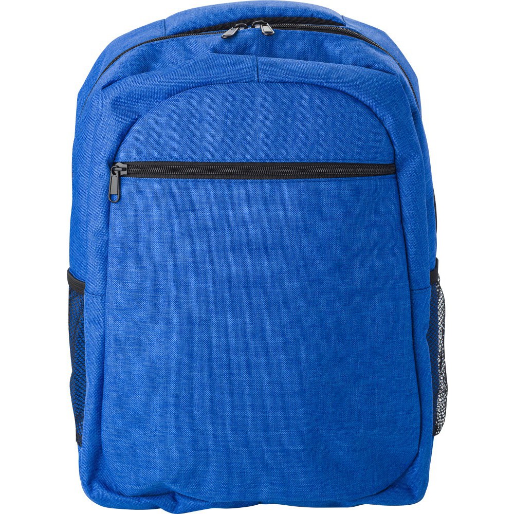 Hátizsák cipzáras elsőzsebbel és állítható vállpántokkal. Belső zseb laptop számára 15"-ig. 2 oldalon hálós zseb. 600D poliészter. Emblémázás: Szitanyomás