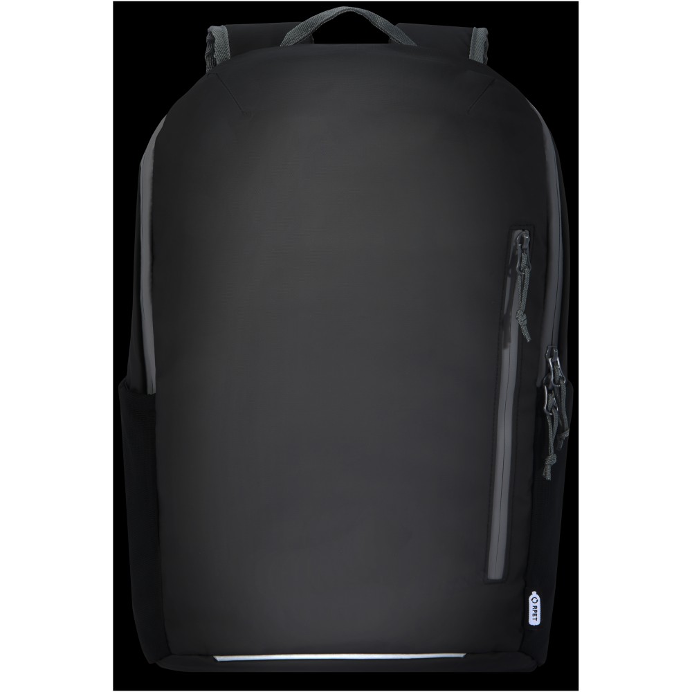 Vízálló laptop hátizsák GRS tanúsítvánnyal rendelkező újrahasznosított anyagokból, beleértve a cipzárakat is. Bélelt 15 -os laptoprekesszel rendelkezik, oldalsó nyílással a gyors hozzáférés érdekében, több hálós zsebbel, cipzáras elülső zsebbel és fényvisszaverő csíkokkal a láthatóság érdekében. A formázott és párnázott hátlapnak és az állítható mellkaspántnak köszönhetően még teljesen megrakott állapotban is kényelmesen hordozható. A GRS újrahasznosított anyagai közé tartozik a főszövet, a bélés, a pántok és a cipzárak. Űrtartalom: 21 liter. PVC-mentes. Emblémázás: Szitanyomás
