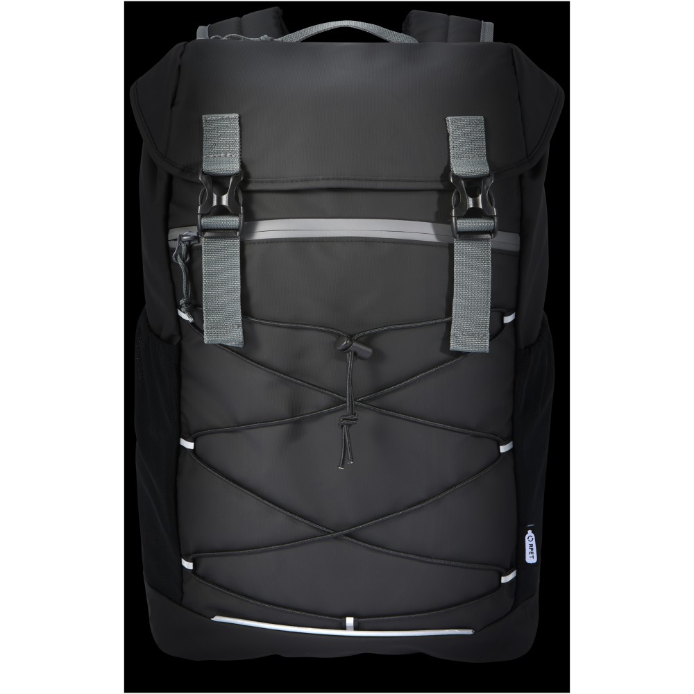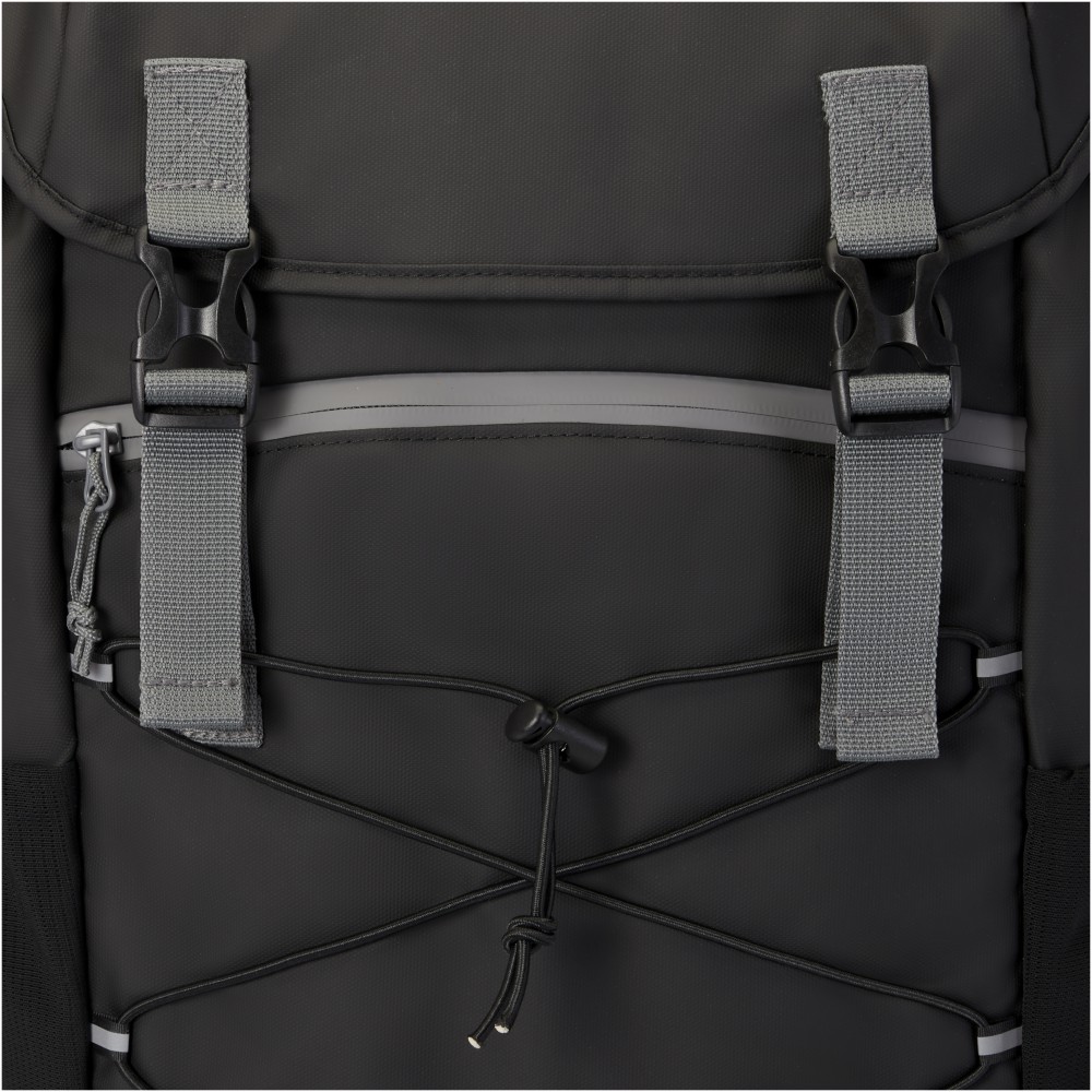 Vízálló laptop hátizsák GRS tanúsítvánnyal rendelkező újrahasznosított anyagokból, beleértve a cipzárakat is. Tágas, 15,6 -os laptoprekesszel rendelkezik, zsinórral és állítható csatokkal, hogy maximalizálja a tárolóhelyet a fedlap alatt. Ez a hátizsák több zsebbel rendelkezik, köztük egy cipzáras elülső zsebbel, rugalmas húzózsinórral a tároláshoz és rendszerezéshez, valamint fényvisszaverő csíkokkal a láthatóság érdekében. A formázott és párnázott hátlapnak és az állítható mellkaspántnak köszönhetően még teljes terhelés esetén is kényelmesen hordozható. A GRS újrahasznosított anyagai közé tartozik a főszövet, a bélés, a hevederek és a cipzárak. Űrtartalom: 23 liter. PVC-mentes. Emblémázás: Szitanyomás
