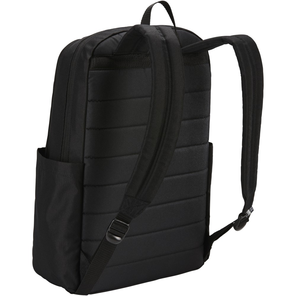 A Case Logic Uplink hátizsák 26 literes tárolókapacitással rendelkezik, köztük két nagy rekesszel, dupla elülső zsebbel és rengeteg rekesszel. A hátizsák 100%-ban újrahasznosított 600D poliészterből készült, párnázott, tartós, 100%-ban újrahasznosított 1200D poliészter talppal kombinálva. A kontúrozott vállpántok és a steppelt, párnázott hátlap kényelmes hordozást biztosítanak. 15,6 -os párnázott laptoprekesszel, 10 -es táblagép tokkal, két nagy oldalsó zsebbel, valamint egy elülső zsebbel a kis elektronikai cikkek, tollak és kulcsok számára. A gyorsan elérhető elülső zsebben telefon és apró kiegészítők tárolhatók. Újrahasznosított poliészter. Emblémázás: Szitanyomás