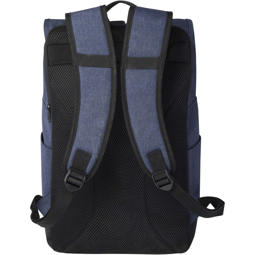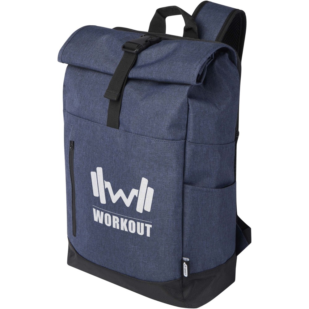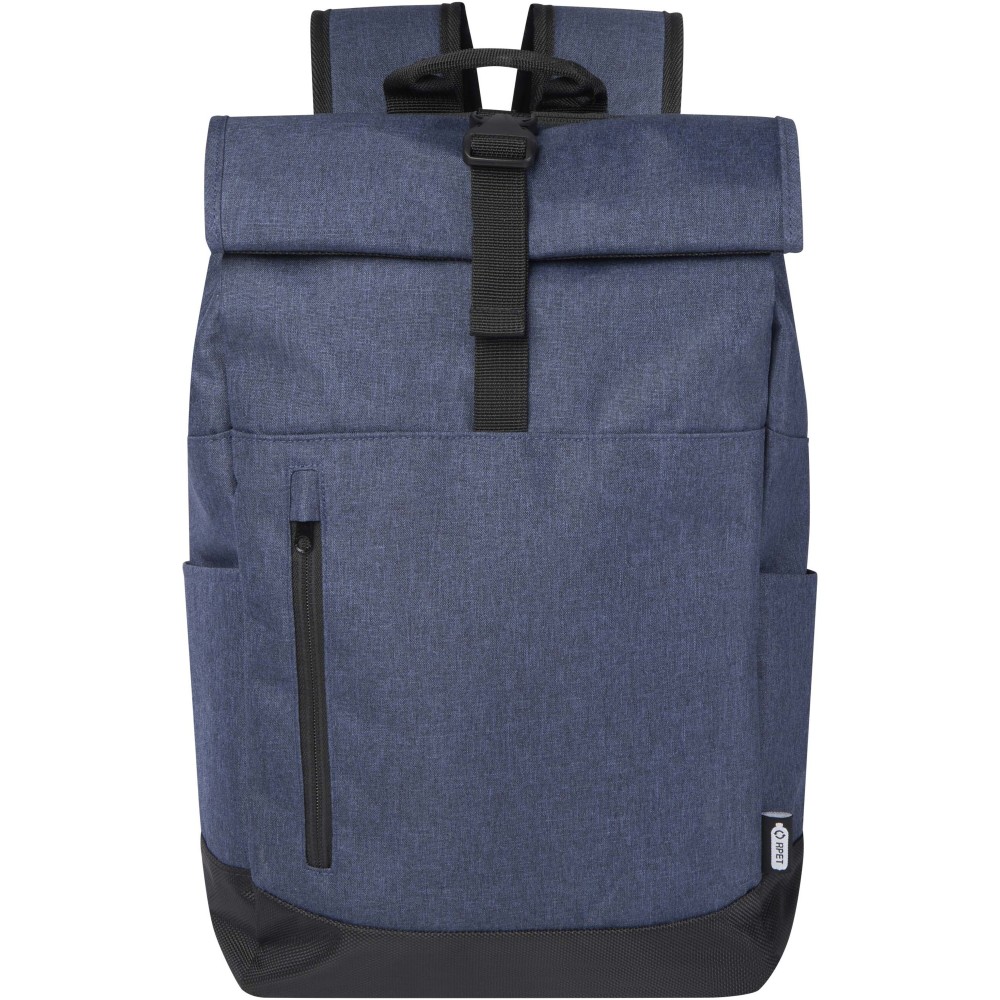 15,6 -es laptop hátizsák bélelt laptoptartóval, és párnázott, állítható vállpántokkal, cipzáras fő rekesszel, feltekerhető zárással, 2 füllel és elülső cipzáras zsebbel. Poliészter, 300D poliészter. Emblémázás: Szitanyomás