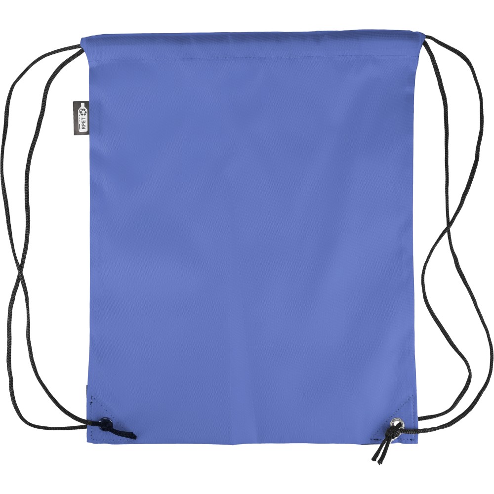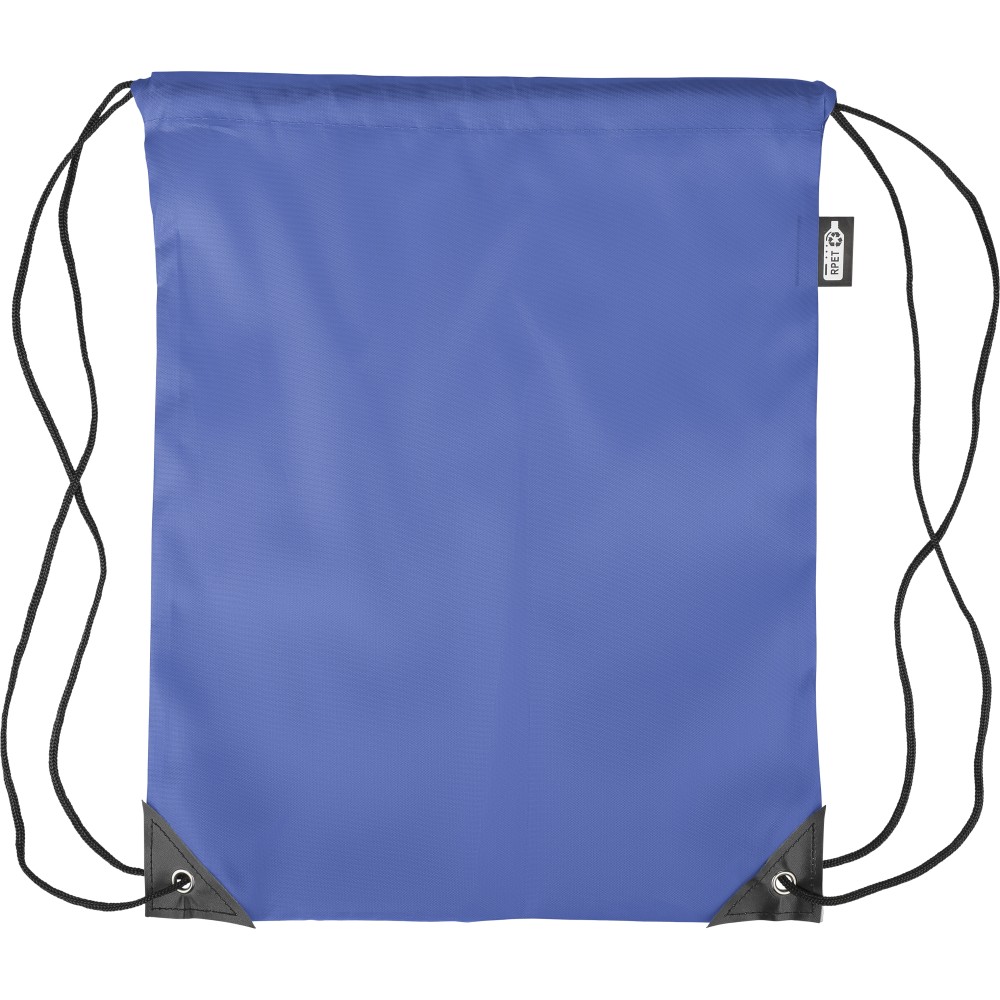 Tornazsák 210D poliészter anyagból, fekete PU sarokerősítéssel az elején, és belső varrással. Fekete nylon húzózsinórral, egy rekesszel. Űrtartalom: 5 liter, teherbíró képesség: 7 kg. rPET címkét tartalmaz. Emblémázás: Szitanyomás