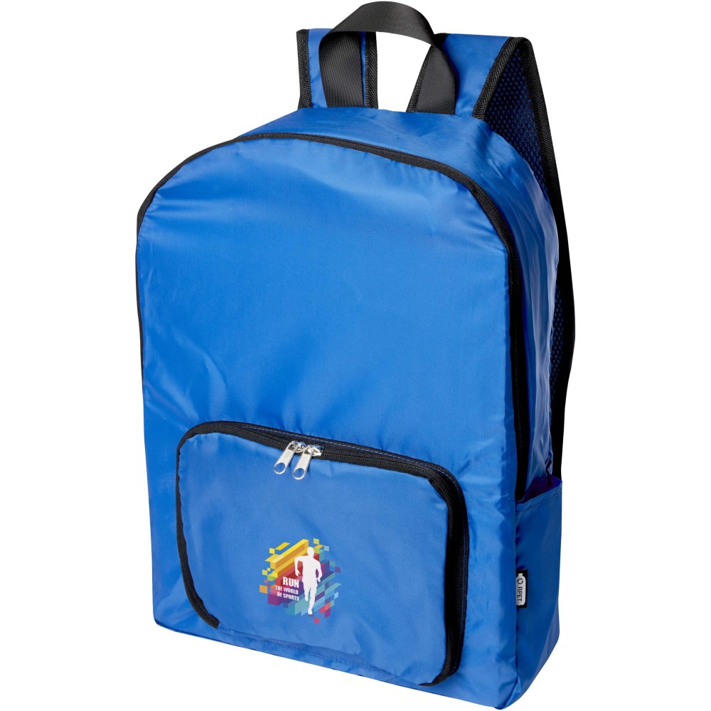 Ez a könnyű, mégis strapabíró hátizsák a kényelem és praktikusság jegyében készült, és könnyedén egy kompakt tasakba hajtható, amelyen szövettáska hurok található a kényelmes hordozás érdekében - ideális utazók, túrázók és a mindennapi használat számára. Cipzáras főrekesszel, cipzáras elülső zsebbel, két oldalsó zsebbel és állítható vállpántokkal rendelkezik. PVC-mentes újrahasznosított poliészterből készült. Űrtartalma: 15 liter. Emblémázás: Szitanyomás