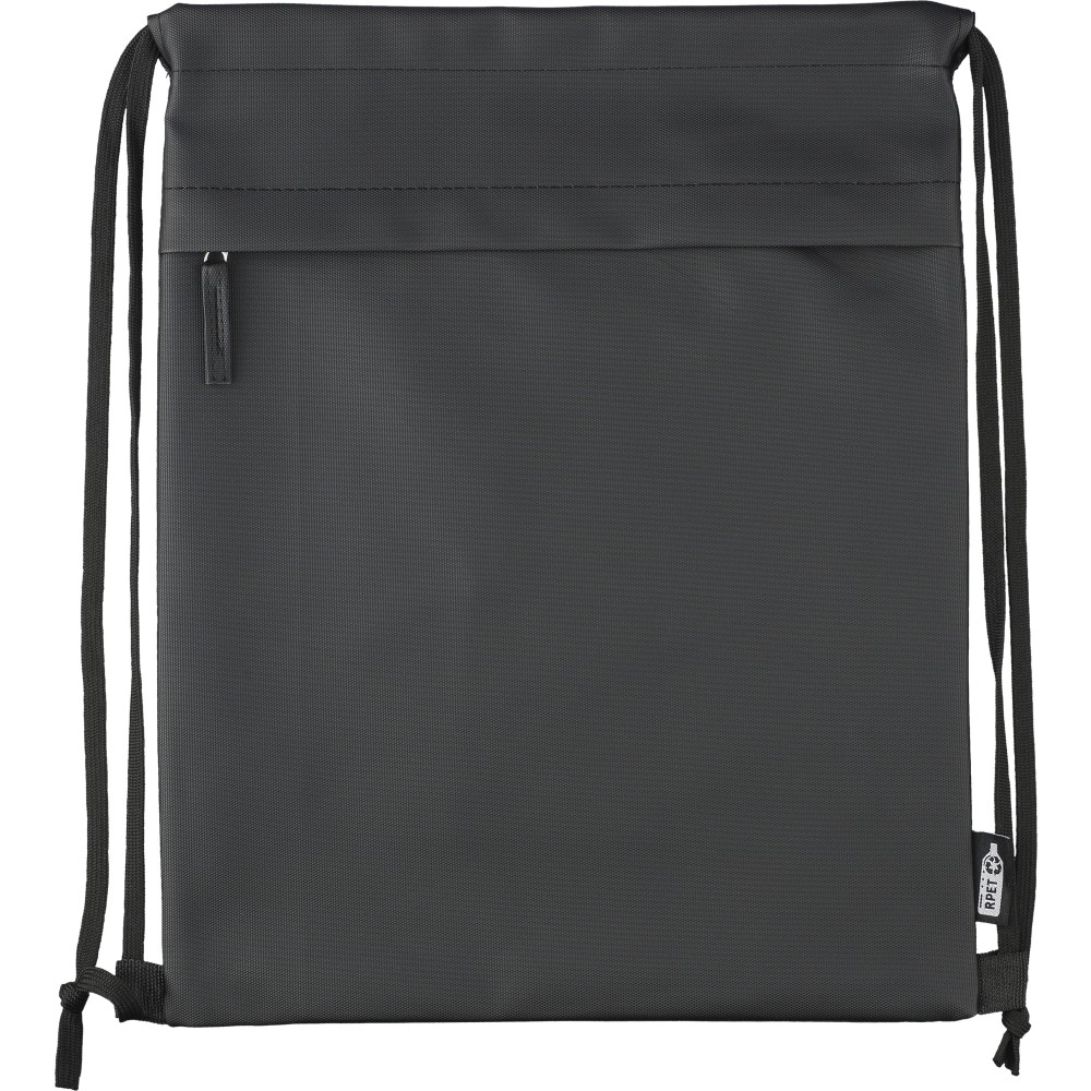 600D rPET poliészter tornazsák. Az elejét PU bevonat teszi vízlepergetővé. Rejtett cipzáras első zsebbel, két tárolórésszel, első és belső zsebekkel. Kapacitása 8 liter, teherbírása 8 kg. Oldalán rPET címkével. Emblémázás: Szitanyomás
