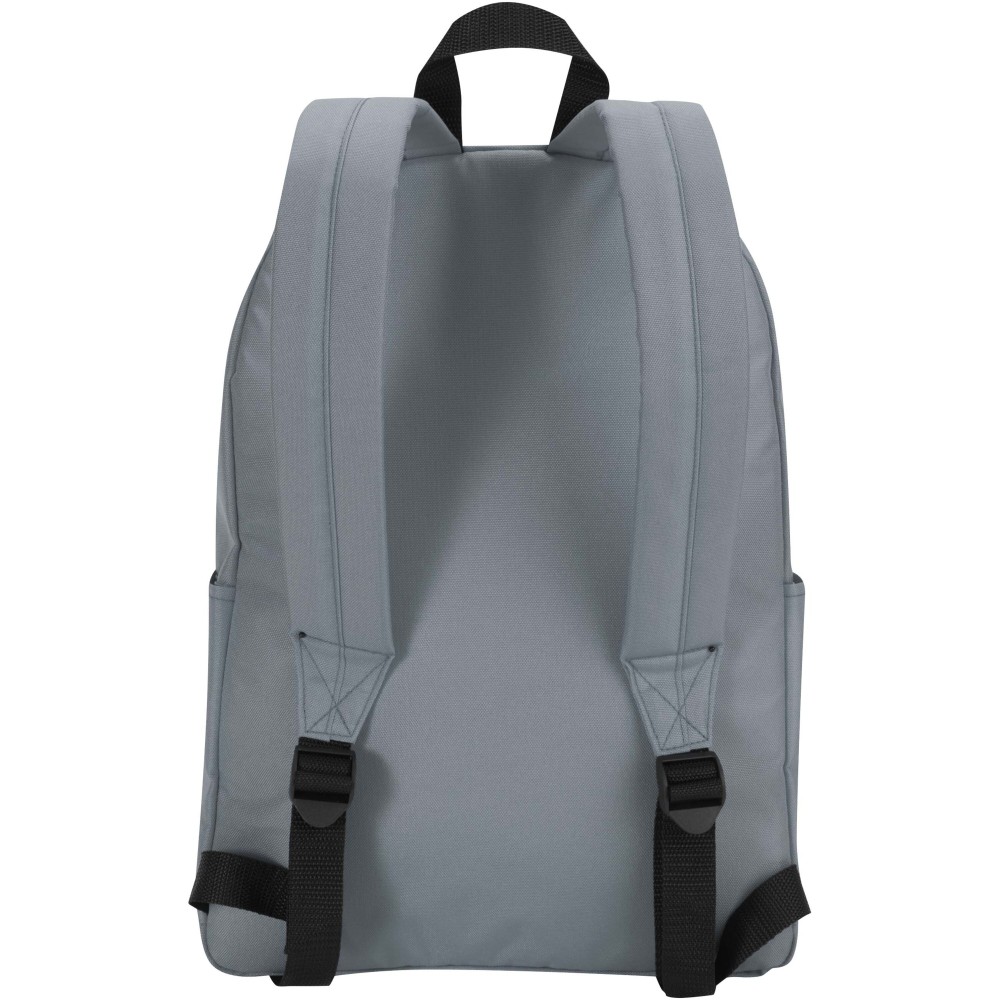 Vízlepergető, GRS tanúsítvánnyal rendelkező, újrahasznosított poliészterből készült a Byron városi laptop hátizsák, amely ideális választás munkába, iskolába vagy városi kiruccanásokra. Karcsú kialakítása 16 literes kapacitást kínál, valamint külön párnázott rekeszt akár 14" laptop számára. Belsejében praktikus rendszerező zsebek segítenek rendben tartani a felszerelést, míg két oldalsó zseb és egy cipzáras elülső zseb biztosít gyors hozzáférést a legfontosabb dolgokhoz. Akár ingázol, akár a várost fedezed fel, ez a kényelmes laptop hátizsák minden lépésnél stílust, tartósságot és funkcionalitást nyújt. Emblémázás: Szitanyomás