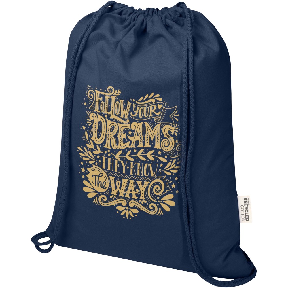 60% újrahasznosított pamutból és 40% RPET-ből készült, GRS tanúsítvánnyal rendelkező tornazsák. Egyszerre erős és könnyű megoldást kínál a mindennapi használatra. Kényelmesen hordható háton vagy vállon, nagyméretű főrekesze pedig a pamut összehúzó zsinórral gyorsan nyitható és zárható. A 180 g/m2 súlyú anyag tartós, és bőséges felületet biztosít logók vagy üzenetek megjelenítésére, így ideális promóciós ajándék márkaépítéshez vagy kampányokhoz. A hátizsák teherbírása max. 5 kg. Emblémázás: Szitanyomás