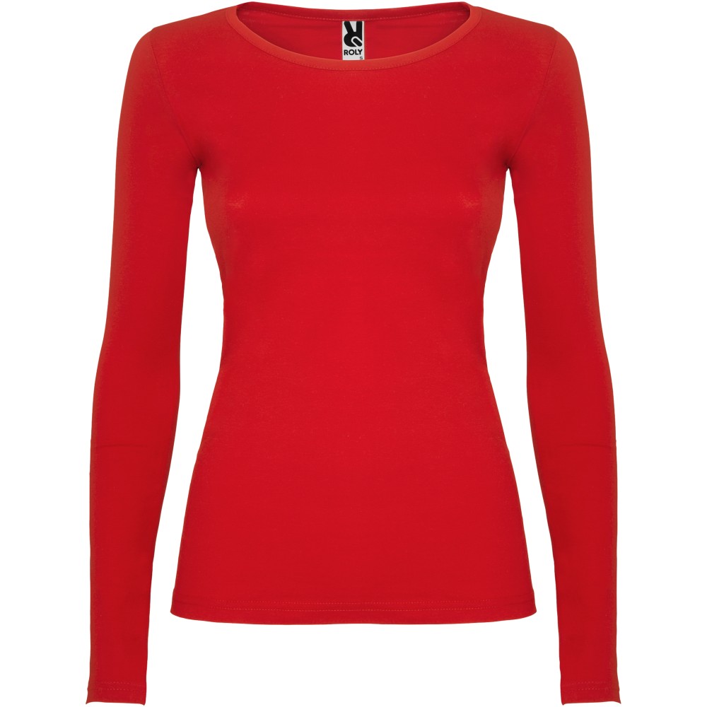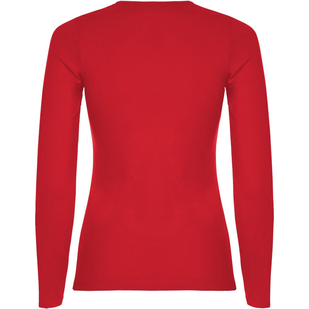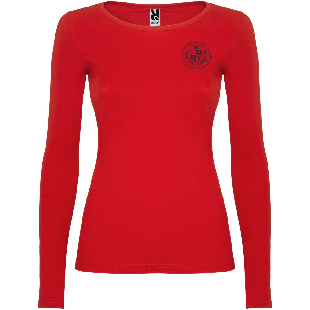 Hosszúujjú, oldalvarott, enyhén karcsúsított női póló 4 rétegű, kerek, keskeny nyakkal. Nincs ujj- és aljpasszé. Megerősített nyaki varrások. A férfi modell körkötött, a gyermek és női modell oldalvarrott. Szürke szín: 85% pamut és 15% viszkóz, 160 g/m2. Egyéb színek: 100% pamut, 160 g/m2. Emblémázás: Hímzés, Szitanyomás