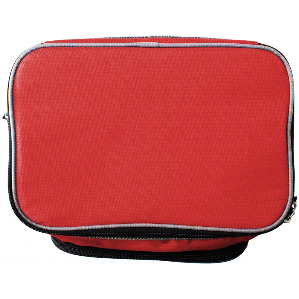 Hűtőtáska nagy cipzáros elsőzsebbel és mindkét végén hálós zsebekkel. 600D poliészter. Emblémázás: Szitanyomás