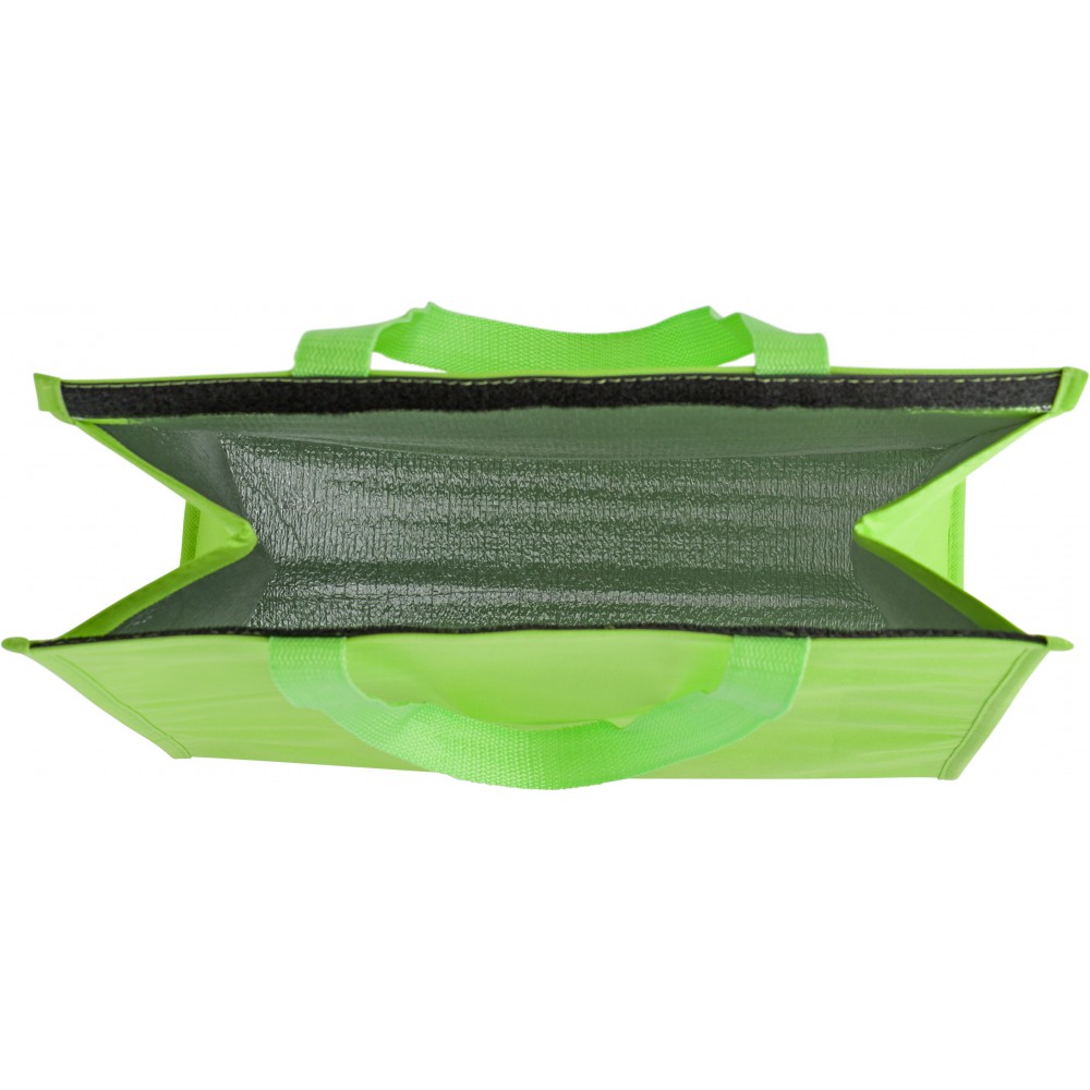 Hűtőtáska rövid füllel, tépőzárral. Nemszőtt anyag. Emblémázás: Szitanyomás