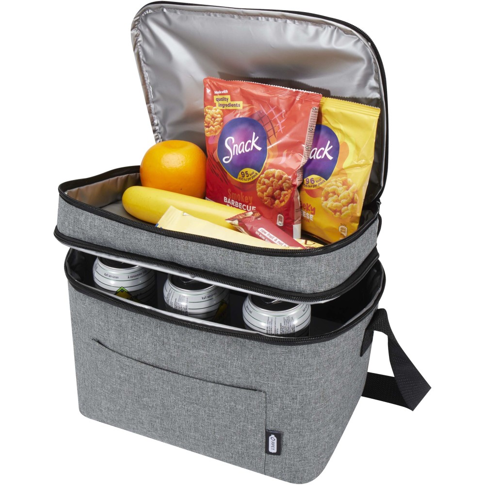 A Tundra hűtőtáska cipzáras felső rekesszel, tágas fő rekesszel és állítható vállpántokkal rendelkezik. PEVA béléssel és GRS tanúsított újrahasznosított poliészterből készült. Űrtartalma: 13 liter. Emblémázás: Szitanyomás