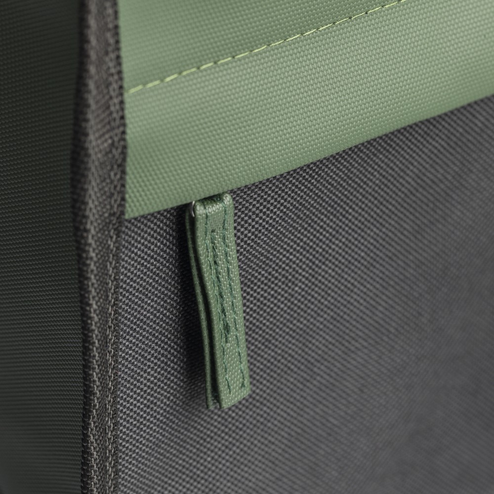 600D rPET poliészter hűtőtáska. PU bevonat teszi vízlepergetővé. Alumíniumfóliás béléssel, első cipzáras zsebbel, három tárolórésszel, hálós oldalzsebbel, tépőzáras záródással. Csatos hordozópánttal. Kapacitása 5 liter. Oldalán rPET címkével. Emblémázás: Szitanyomás