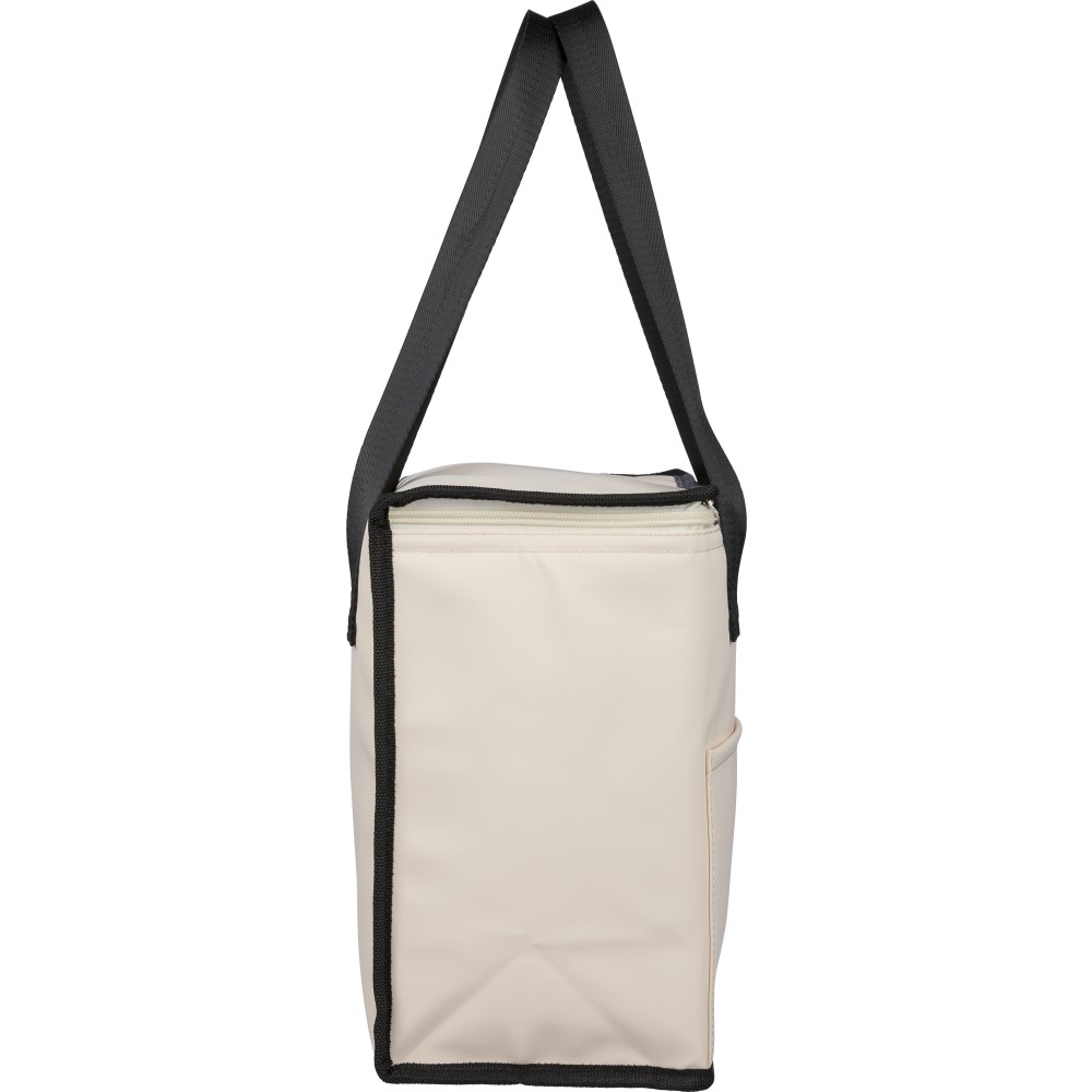 Újrahasznosított PU anyagból készült hűtőtáska 9 literes űrtartalommal, 210D újrahasznosított poliészter béléssel. 2,5 × 66 cm méretű hosszú fülekkel és elülső tárolózsebbel rendelkezik. A belső címkén újrahasznosított alapanyagra utaló logó található. Emblémázás: Szitanyomás