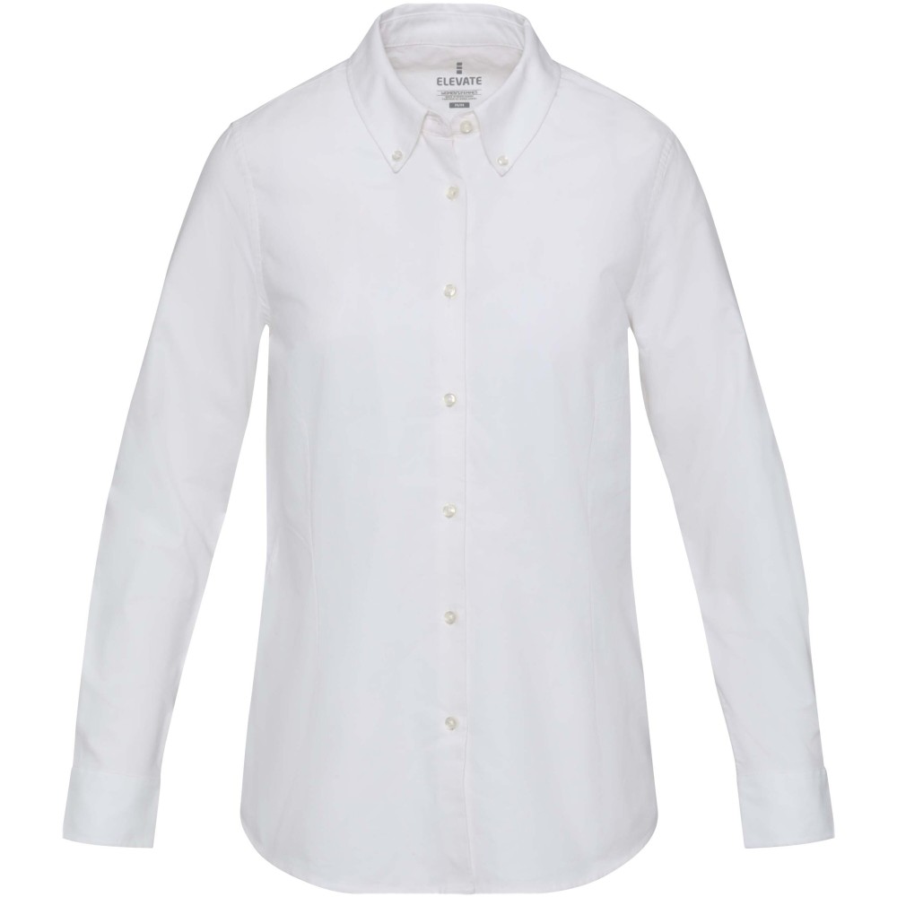A Sphene hosszúujjú női oxford blúz időtálló dizájnt kínál, kifinomult nőiességgel. BCI-tanúsítvánnyal rendelkező pamutból készült, sima, kiváló minőségű tapintást biztosít, miközben támogatja a fenntarthatóbb pamuttermelést. A klasszikus oxford szövés finom textúrát és szerkezetet ad, kifinomult megjelenést teremtve, amely professzionális és alkalmi helyzetekben egyaránt jól működik. Normál fazonú, elöl és hátul formázó redőkkel, előnyös, kontúrozott sziluettet kínál. A gombos gallér teszi teljessé a dizájnt, így a Sphene egy sokoldalú alapdarab a ruhatárban. 100% BCI pamut oxford. Emblémázás: Hímzés