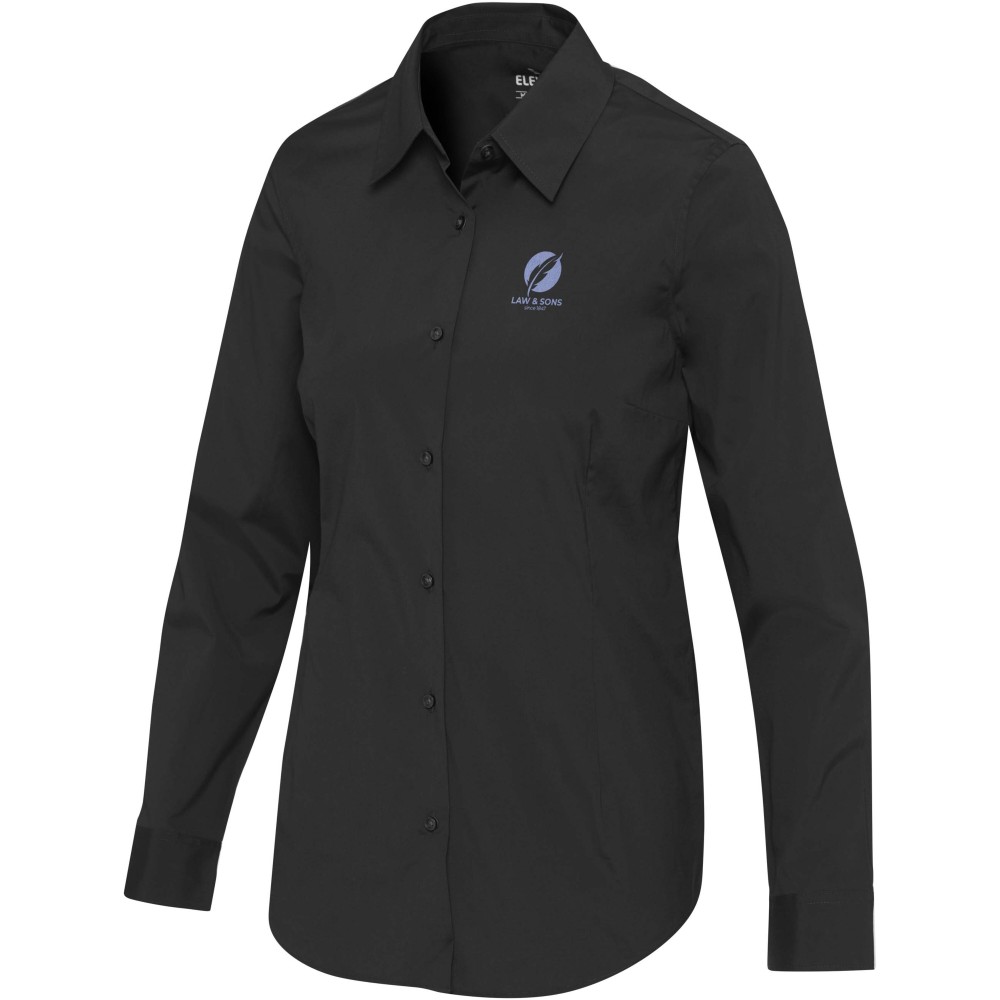 A Carnelian hosszúujjú női puplin ing letisztult stílust és rugalmas, nőies szabást kínál. Prémium, BCI minősítésű, rugalmas pamutból készült, finoman szőtt, 30 denieres, kétrétegű, csavart fonalszerkezete puha, kiváló minőségű kidolgozást és tartós formát biztosít. Normál szabással, elöl és hátul formázó bevarrással tervezték, így előnyös sziluettet és egész napos kényelmet kínál. Időtlen, normál gallérral készült, a Carnelian ing ötvözi az eleganciát és a teljesítményt, így kifinomult, alapvető darab a mindennapi viselethez. 3% elasztánból és 97% BCI pamutból készült puplin, 133 g/m2. Emblémázás: Hímzés
