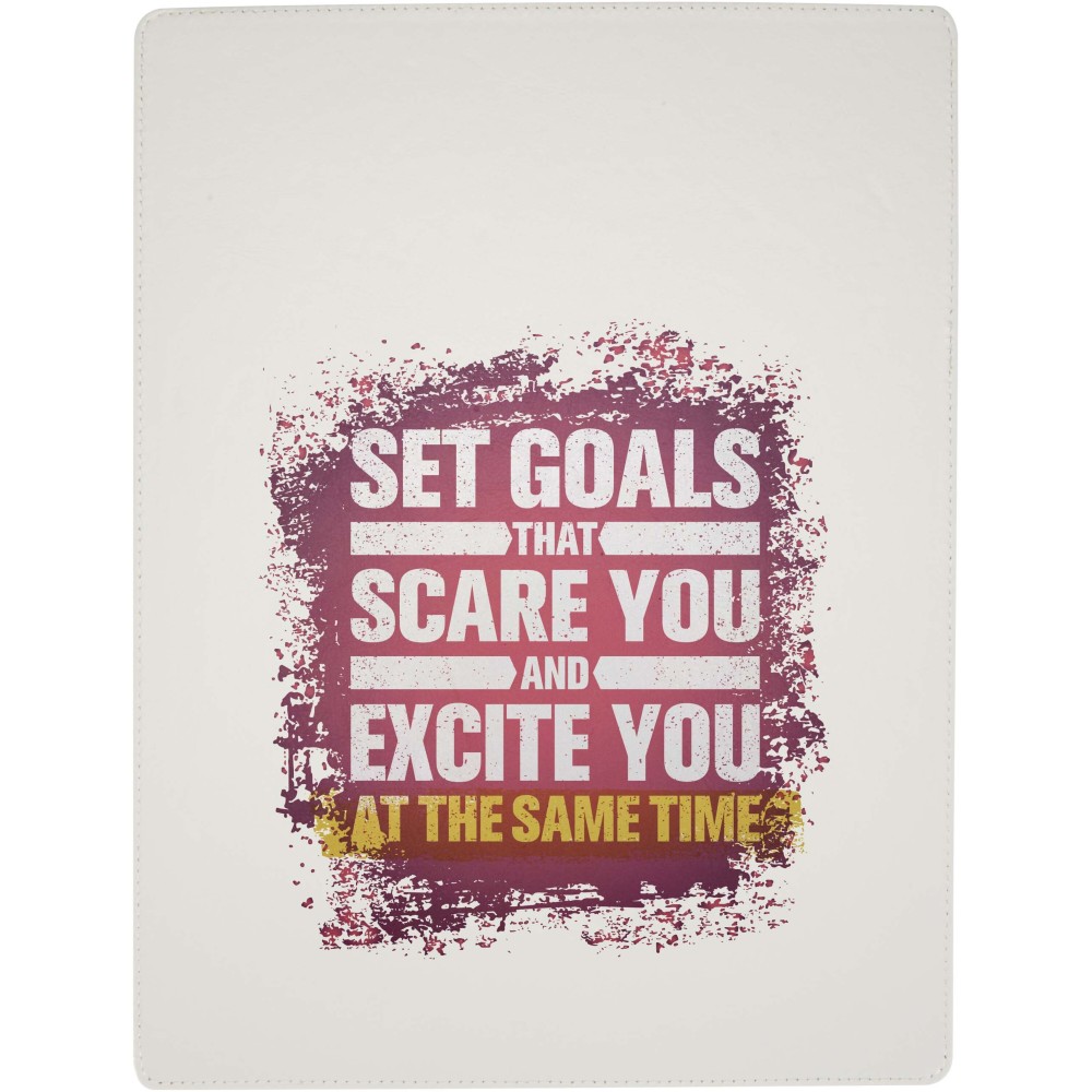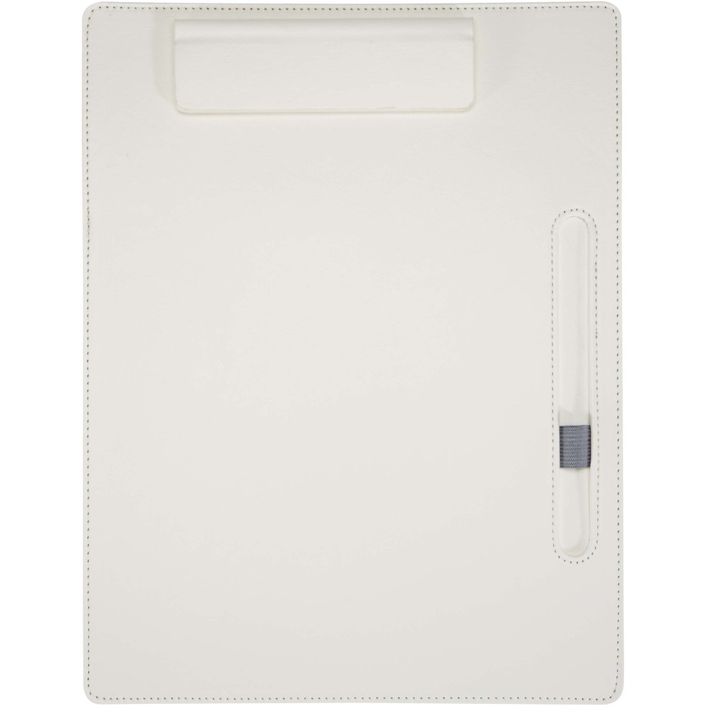A Clast felírótábla a letisztult PU-műbőr megjelenést ötvözi a praktikus funkciókkal, így ideális választás tárgyalásokhoz és a mindennapi használathoz egyaránt. A standard A4-es méretű lapokhoz tervezett eszköz mágneses rögzítővel, varrott szélekkel és beépített tolltartó pánttal rendelkezik. A 25,5 × 33 cm-es tábla 26 darab 65 g/m2 súlyú vonalas papírt, valamint egy golyóstollat is tartalmaz, amelynek felső része újrahasznosított műanyagból, alsó része pedig RCS tanúsítvánnyal rendelkező újrahasznosított alumíniumból készült. A készletben található Juana golyóstoll külön is elérhető. Fekete tollbetéttel. Emblémázás: Szitanyomás