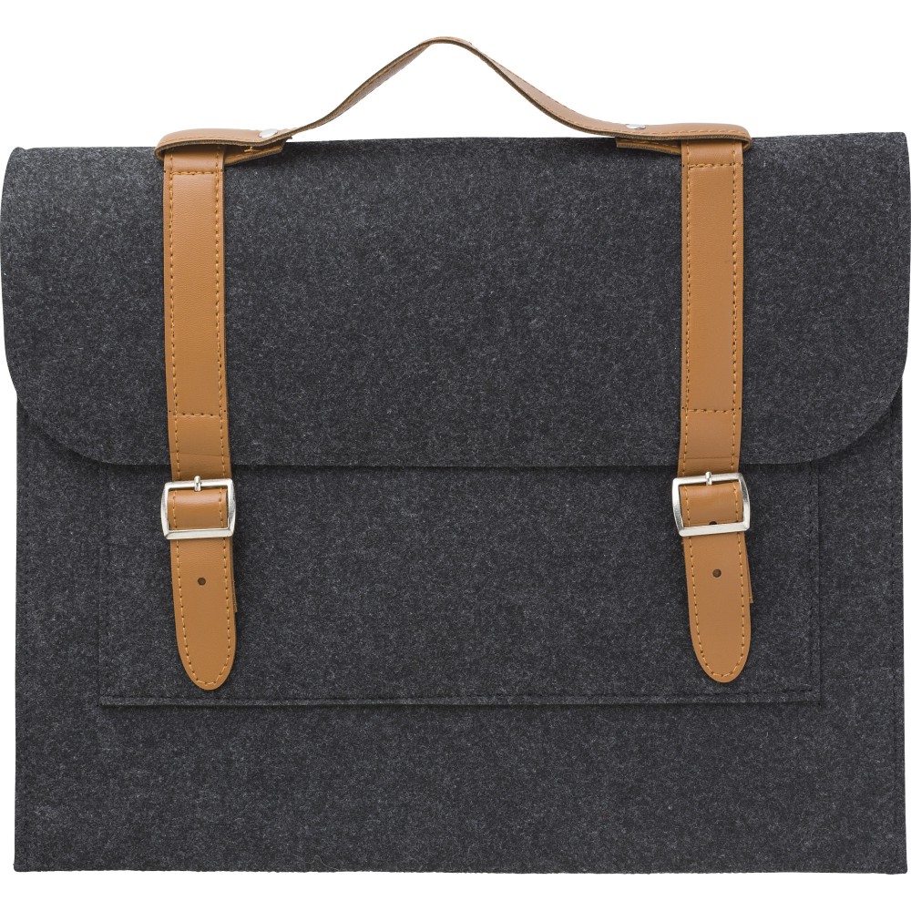 RPET filcből készült irattáska PU részletekkel. Egy nagy rekesz. A táska két csattal záródik. Emblémázás: Hímzés, Szitanyomás