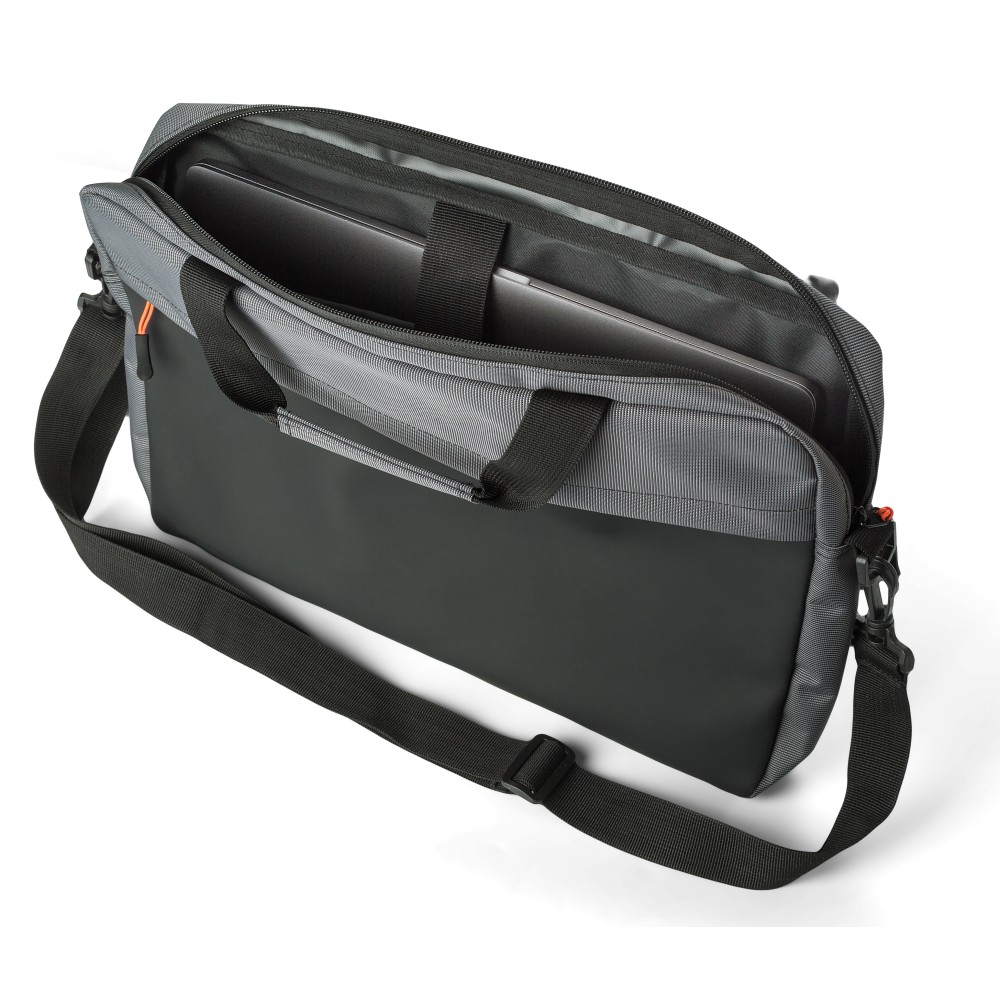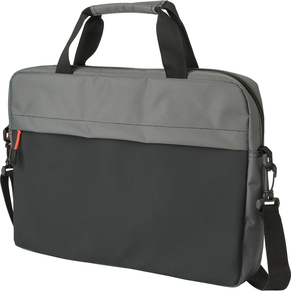 500D kéttónusú laptoptáska. Alkalmas egy 15 colos laptop számára, egy nagy, párnázott cipzáras rekesz a laptopnak. Rövid fogóval és állítható vállpánttal rendelkezik. Emblémázás: Szitanyomás