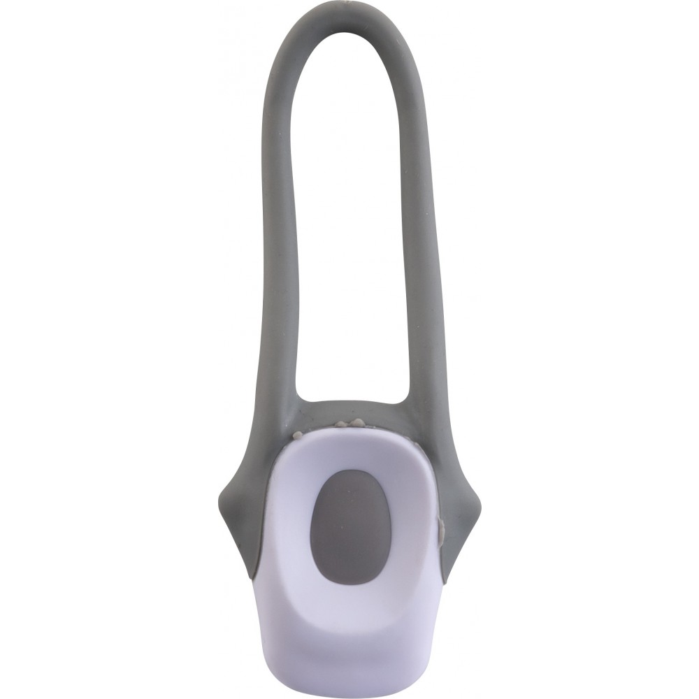 Műanyag kerékpáros lámpa két LED-del, szilikon rögzítőpánttal, kétféle villogó funkcióval és ki/bekapcsoló gombbal. A fehér színű lámpa első világításnak, a piros pedig hátsó világítás céljára alkalmas. Az elemet tartalmazza. Emblémázás: Tamponnyomás