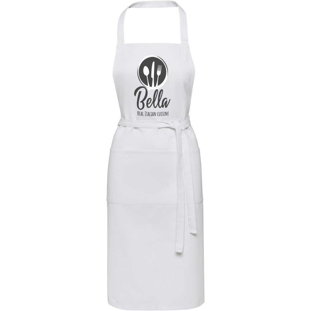 A Shara kötény 70% újrahasznosított pamutból és 30% újrahasznosított poliészterből készült, így vastag, strapabíró és kényelmes viselet. A kötény 2 egymás melletti zsebbel (egyenként 22 x 20 cm) és egy 1 méteres megkötővel rendelkezik. A kötény Cyclo újrahasznosított szálakat tartalmaz, ahol előválogatott hulladékot használnak, amely meghatározza a fonal színét. Minden kötényhez egy Aware nyomjelző is tartozik. Ez az innovatív funkció lehetővé teszi a felhasználók számára, hogy egy QR-kód segítségével nyomon követhessék a termék eredetét és útját, növelve az ellátási lánc átláthatóságát és elősegítve a termék és a gyártási folyamat közötti szorosabb kapcsolatot. Emblémázás: Hímzés, Szitanyomás
