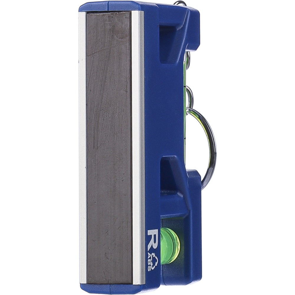Újrahasznosított ABS-ből készült mágneses kulcstartó vízmértékkel és méretjelzéssel a tetején. Alján mágneses csíkkal fém felületekre való rögzítéshez. Kulcskarikát és újrahasznosított ABS logót tartalmaz a hátoldalán. Egyenként csomagolva, barna kartondobozban. Emblémázás: Tamponnyomás
