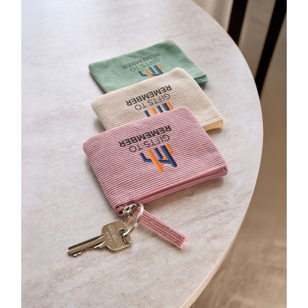 Kordbársony anyagból készült kulcstartó tárca biztonságos cipzáras záródással. Kulcskarika nélkül. Emblémázás: Szitanyomás
