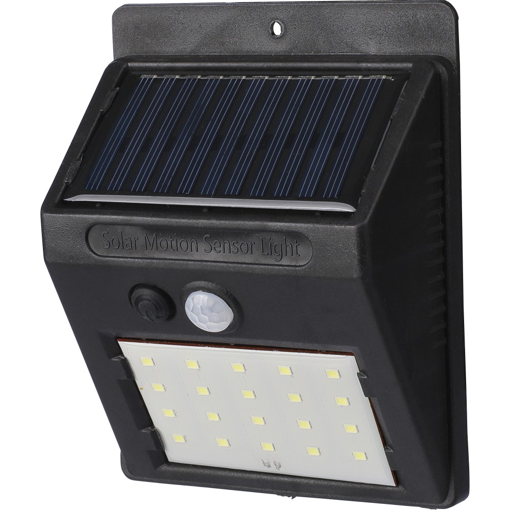 Napelemes lámpa 20 COB LED-del. Éjjeli érzékelővel (CDS) és mozgásérzékelővel (PIR). 800 mAh-s akkumulátorral, töltőkábellel, IP44 besorolással és állandó vagy villogó funkciókkal. Csomagolása barna papírdoboz. PP. Emblémázás: Tamponnyomás