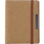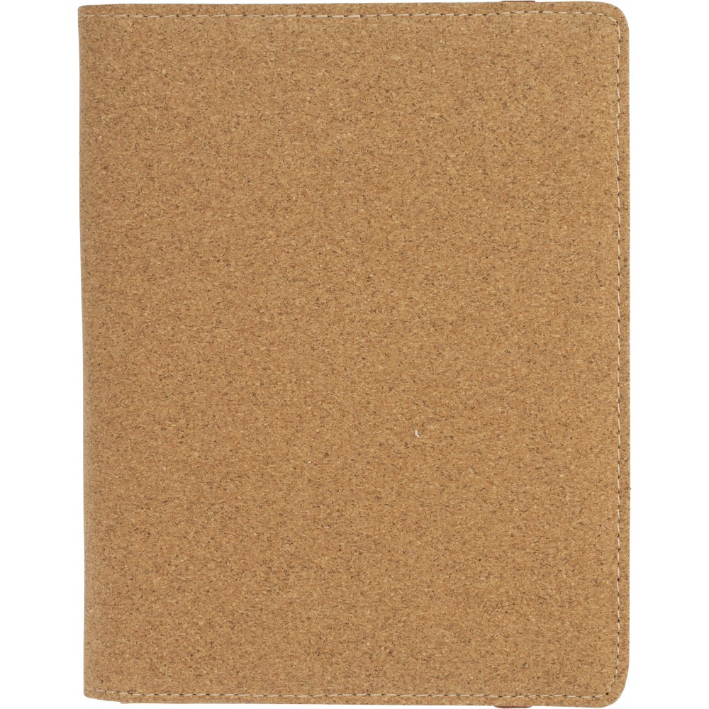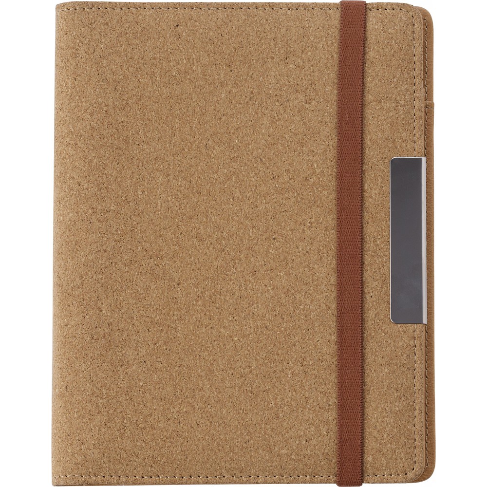 A5-ös méretű parafa mappa gumis zárópánttal, PU belsővel, kicsi hálós névjegytartó zsebbel, egy nagyobb zsebbel, 20 lapos jegyzettömbbel és tolltartó füllel (a tollat nem tartalmazza). Emblémázás: Gravírozás, Szitanyomás, Tamponnyomás