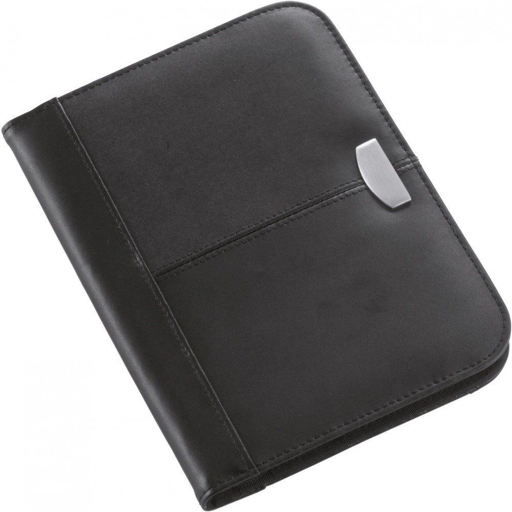 A5-ös cipzáras, préselt bőr mappa, jegyzettömbbel. Emblémázás: Gravírozás, Szitanyomás, Tamponnyomás