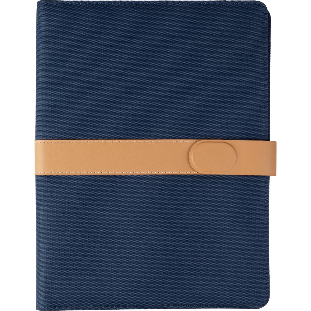 RPET összehajtható mappa, kb. A4-es méretben, több rekesszel, tollhurokkal és mágneses zárással. Tartalmaz egy jegyzettömböt 20 vonalas lappal. Egyedileg csomagolva kraft papír tokba. Emblémázás: Tamponnyomás