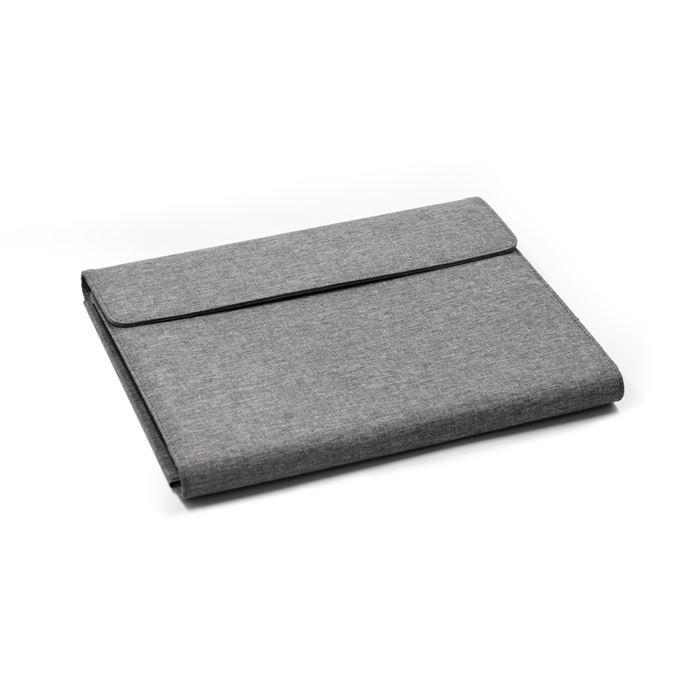 A Noty Folio portfólió újrahasznosított PET-palackokból és papírból készült, prémium minőségű üzleti mappa, amely tökéletes választás elfoglalt szakemberek számára. Helyet biztosít egy A4-es jegyzettömbnek, egy tablet/laptop zsebnek (legfeljebb 13?-os méretig), valamint külön rekeszeket kínál az alapvető tárgyak, például névjegykártyák tárolására. A mappa mágneses záródással, kemény borítóval és kihajtható asztali rendszerezővel van ellátva. Ideális gyakran utazó vagy úton lévő embereknek. Emblémázás: Szitanyomás
