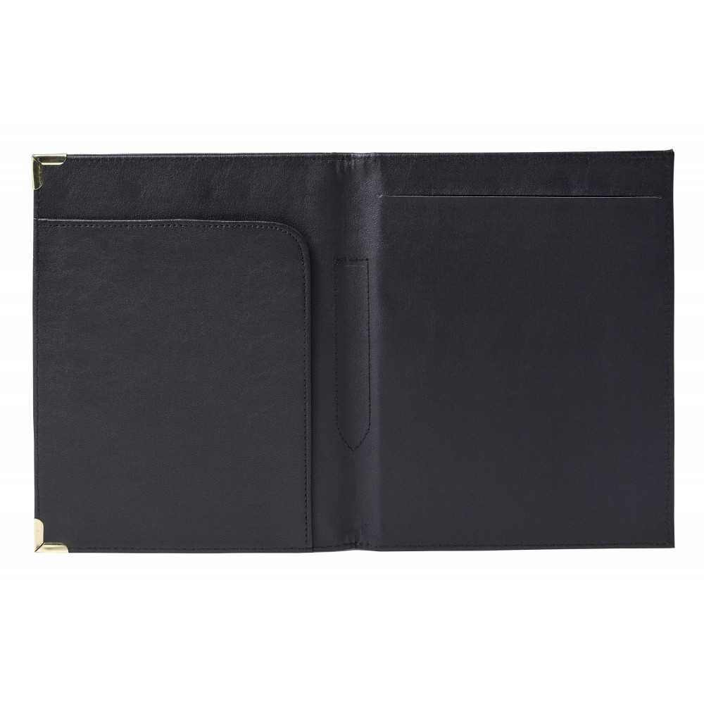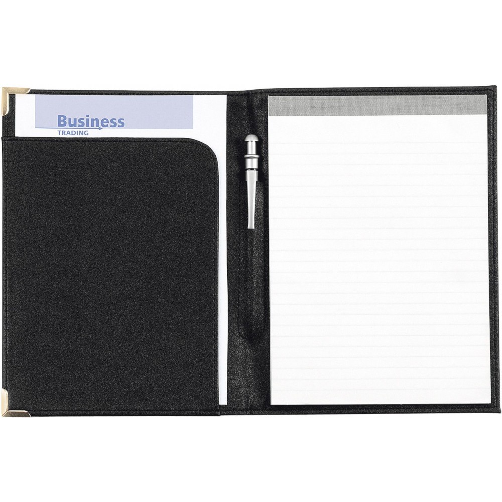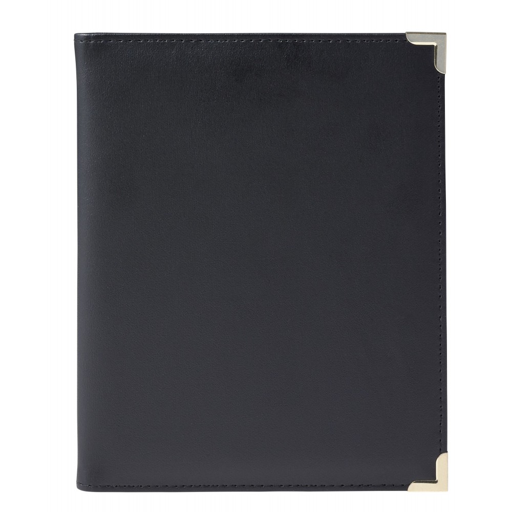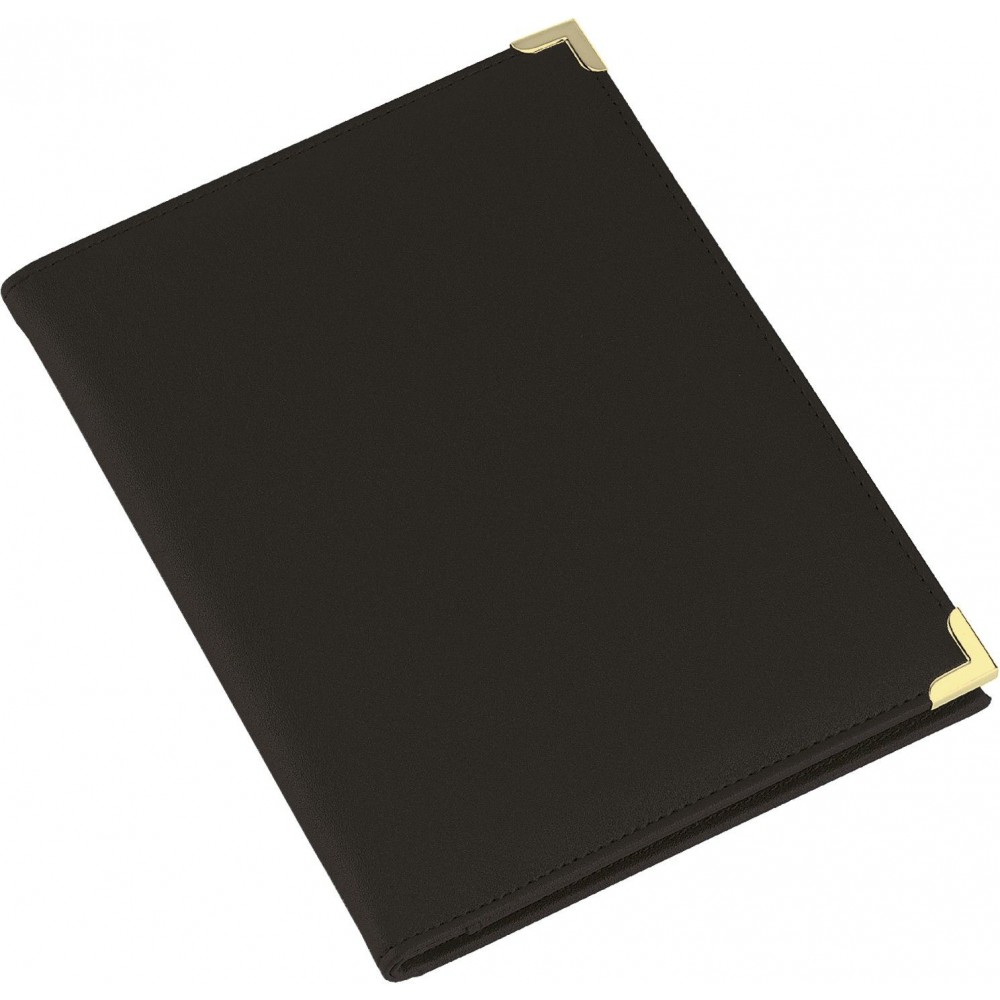 A5-ös műbőr mappa fém sarokkal, fekete/arany