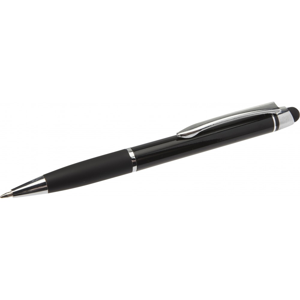 Golyóstoll érintővel, fényes felülettel, színben illeszkedő gumis fogórésszel, fényes ezüst kiegészítőkkel, fekete tollbetéttel. Alumínium. Emblémázás: Gravírozás, Tamponnyomás, UV nyomtatás