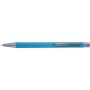 Golyóstoll gumis bevonattal, kék tollbetéttel. A hegy, klipsz és a nyomógomb egyforma sötétszürke színű. ABS, alumínium. Emblémázás: Gravírozás, UV nyomtatás