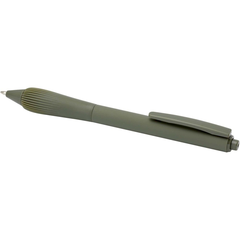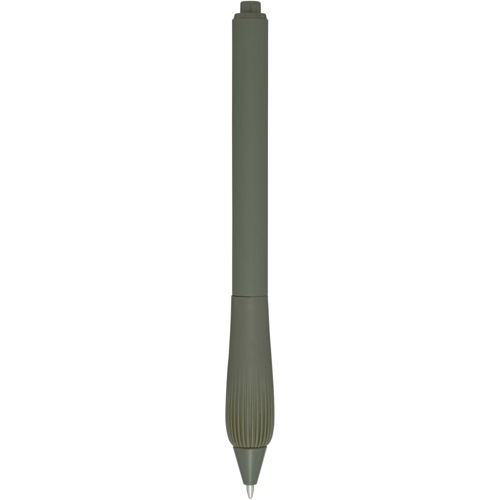 Újrahasznosított műanyag golyóstoll gumírozott tolltesttel és TPR anyagból készült fogórésszel. Fekete tollbetéttel. Írási hossz: 1000 méter. Hegyméret: 1,0 mm. Emblémázás: Tamponnyomás
