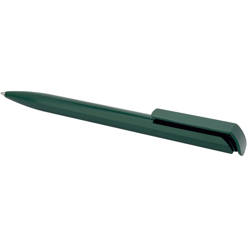Golyóstoll, amelynek teste és klipsze újrahasznosított műanyagból készült, a hegy pedig rozsdamentes acélból. Fekete tollbetéttel. Íráshossz: 3000 méter. Hegyméret: 1,00 mm. Németországban készült. Emblémázás: Tamponnyomás