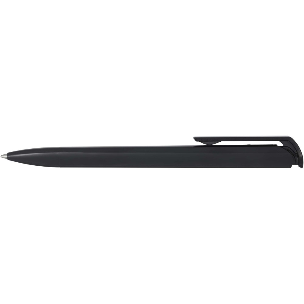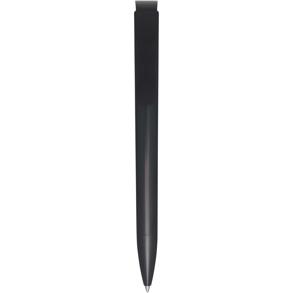 Golyóstoll, amelynek teste és klipsze újrahasznosított műanyagból készült, a hegy pedig rozsdamentes acélból. Fekete tollbetéttel. Íráshossz: 3000 méter. Hegyméret: 1,00 mm. Németországban készült. Emblémázás: Tamponnyomás