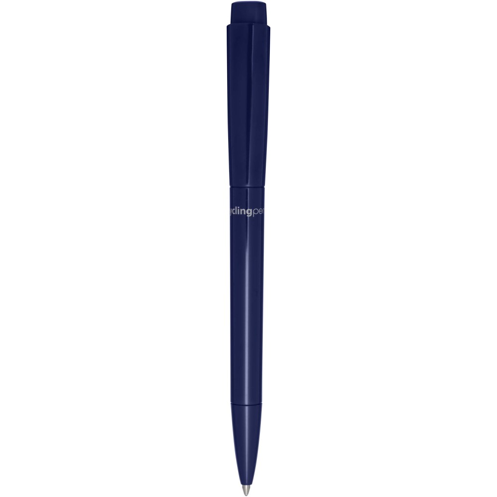 Golyóstoll, amelynek teste és klipsze újrahasznosított műanyagból, hegye pedig rozsdamentes acélból készült. Kék tollbetéttel. Íráshossz: 3000 méter. Hegyméret: 1,00 mm. Németországban készült. Emblémázás: Tamponnyomás