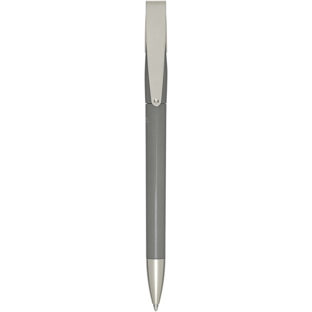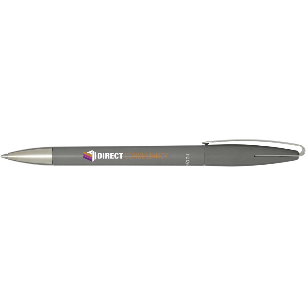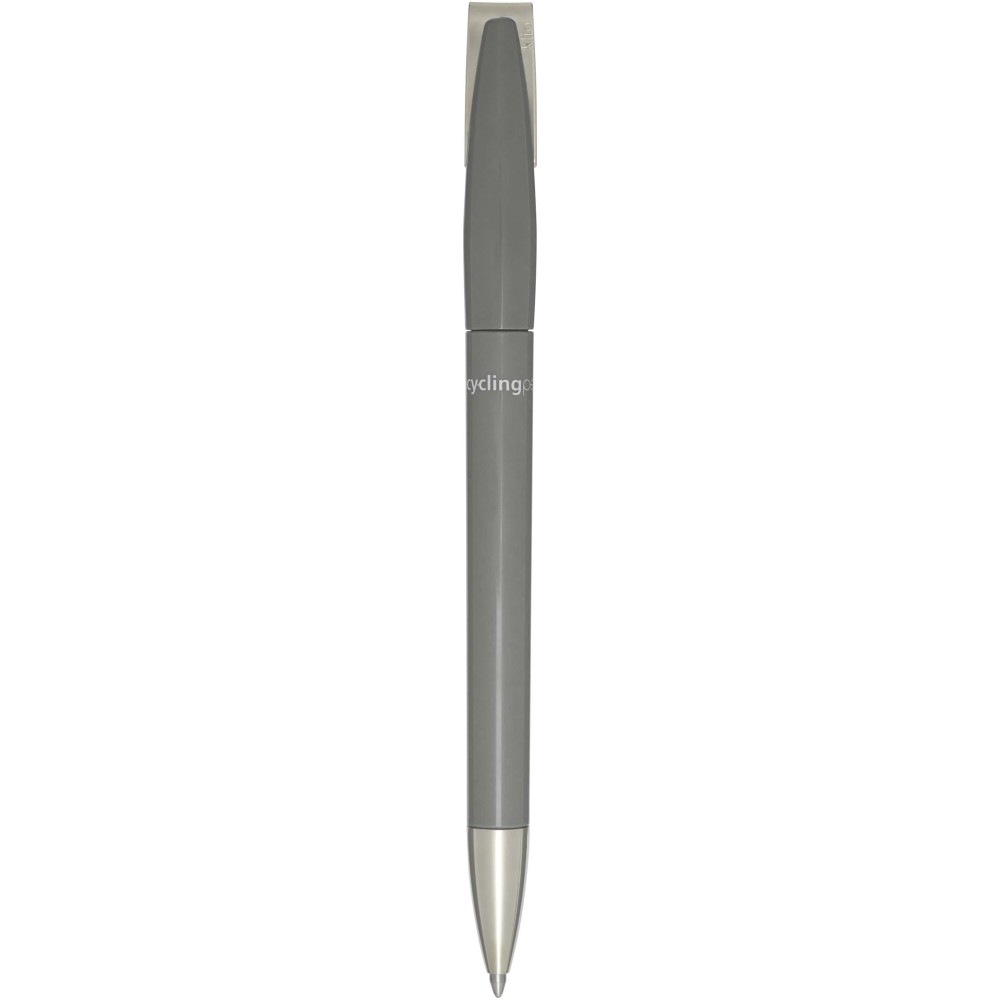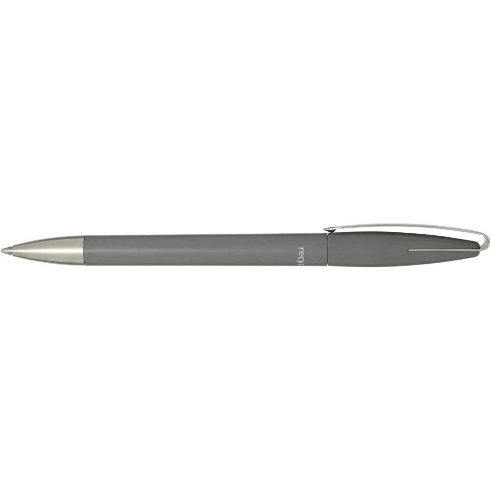 Golyóstoll, amelynek teste és klipsze újrahasznosított műanyagból, hegye pedig rozsdamentes acélból készült. Kék tollbetéttel. Íráshossz: 3000 méter. Hegyméret: 1,00 mm. Németországban készült. Emblémázás: Tamponnyomás