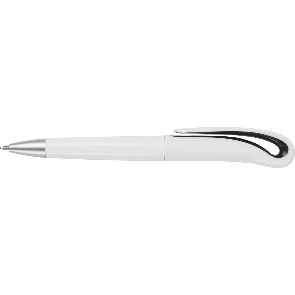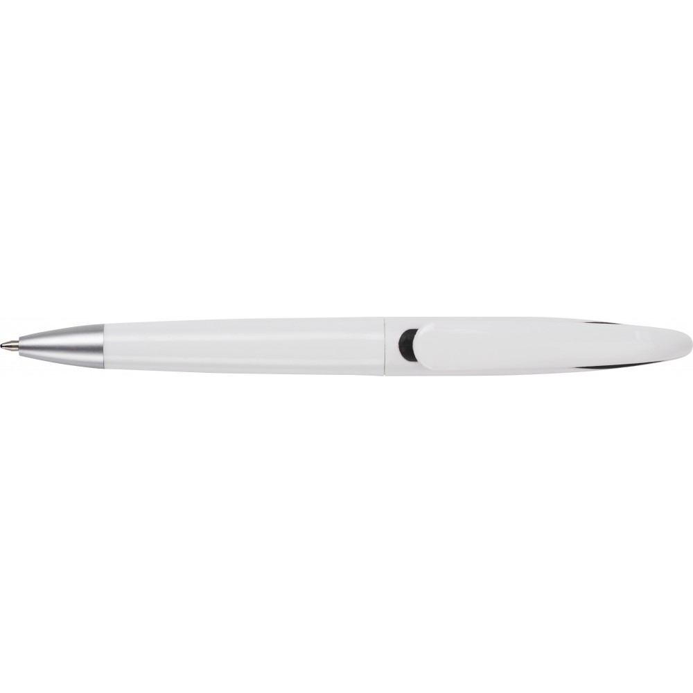 Műanyag golyóstoll fekete tollbetéttel. Emblémázás: Tamponnyomás, UV nyomtatás