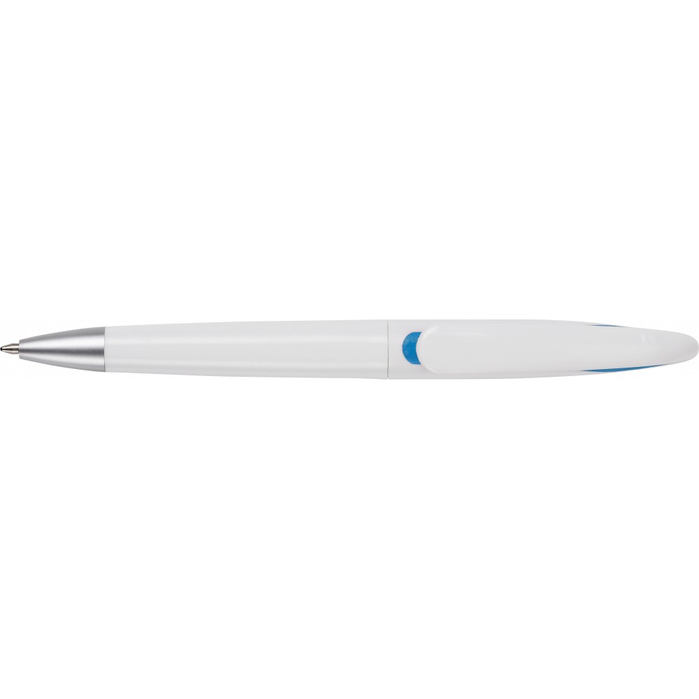 Műanyag golyóstoll fekete tollbetéttel. Emblémázás: Tamponnyomás, UV nyomtatás