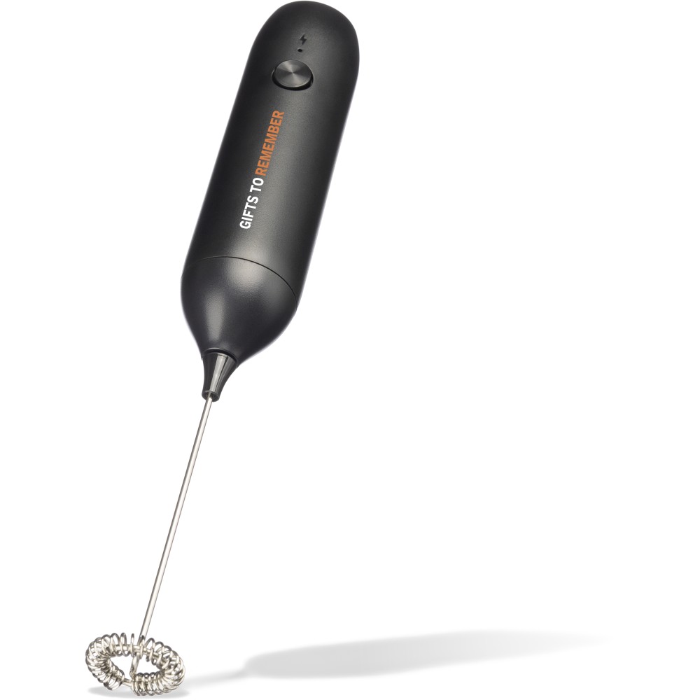 Elektromos tejhabosító 500 mAh-s akkumulátorral és C-típusú töltőkábellel. Percenkénti fordulatszám: 10.000. Alkalmas tej vagy protein habosítására. Csomagolása barna papírdoboz. ABS, rozsdamentes acél. Emblémázás: Tamponnyomás