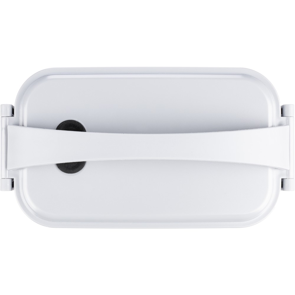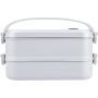 1600 ml-es PP ételtároló doboz 2 db, egyenként 800 ml-es résszel. Szilikon szeleppel a mikrohullámú sütőben történő melegítéshez, csatos záródással és szilikon hordozófüllel. Mosogatógépben tisztítható. Emblémázás: Tamponnyomás