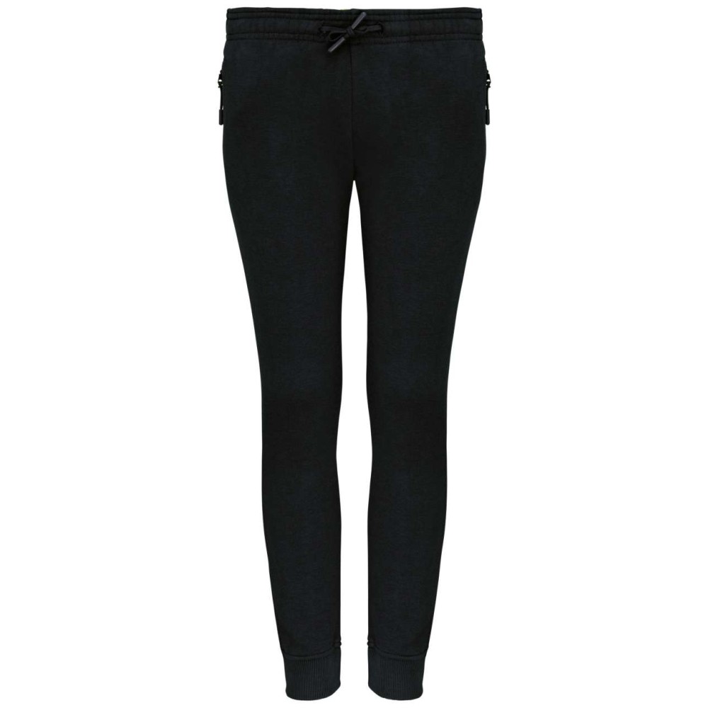 65% poliészter / 35% pamut. 280 g/m2 polár. Rugkörtes derékpánt hozzá illő húzózsinórral. Az extra kényelem érdekében a derék belső oldalán kontrasztos. lágy rugkörtes szalag található. fluoreszkáló végzárással. 2 cipzárazható mesh oldalzseb. 1 foltzseb hátul. 2x2 bordázott lábkivágás. Emblémázás: Szitanyomás