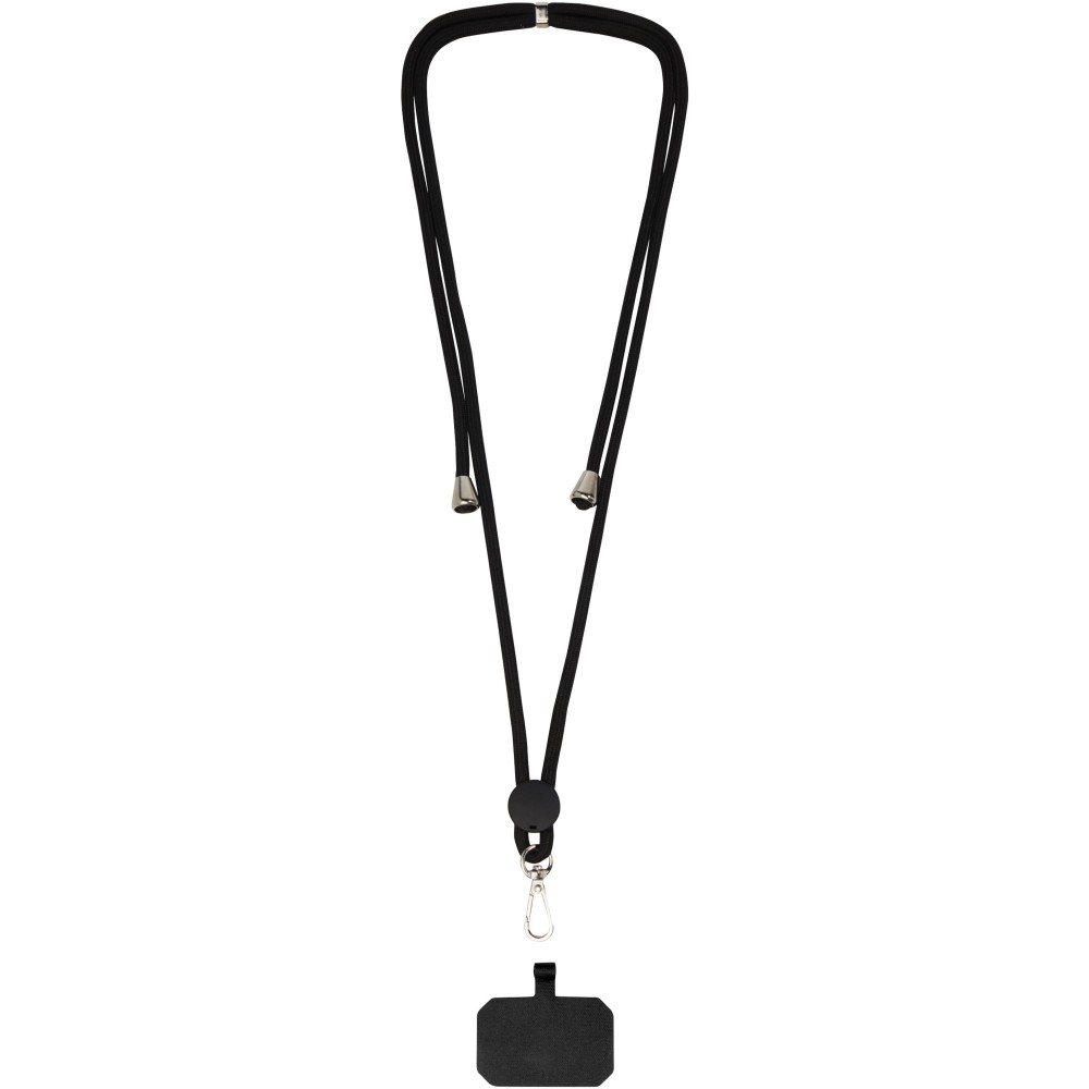 Univerzális, kiváló minőségű nyakpánt mobiltelefon-tokokhoz, minden tokkal ellátott okostelefonhoz alkalmas. A zsinór maximális hossza 160 cm, az állítható csattal pedig a kívánt hosszra állítható. A zsinór könnyen kioldható a fém kampóval, így a pánt a telefontok belsejében marad, hogy újra könnyen rögzíthető legyen. Emblémázás: Tamponnyomás