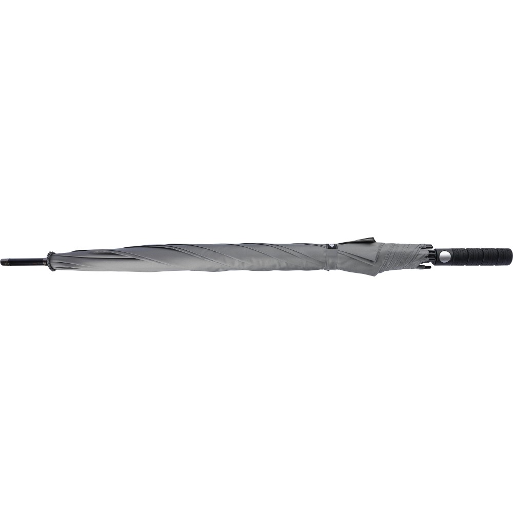 Automata esernyő (27 inch) nyolc panellel és üvegszálas vázzal. Nyomógombbal nyitható, tépőzáras záródásán RPET címkével, tokkal. Szélálló. Anyaga: RPET 190T. Emblémázás: Szitanyomás