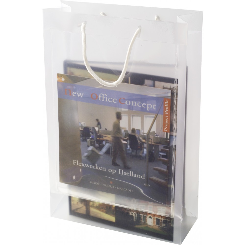 Polipropilén táska A4 méretű zsebbel, színtelen. Emblémázás: Tamponnyomás